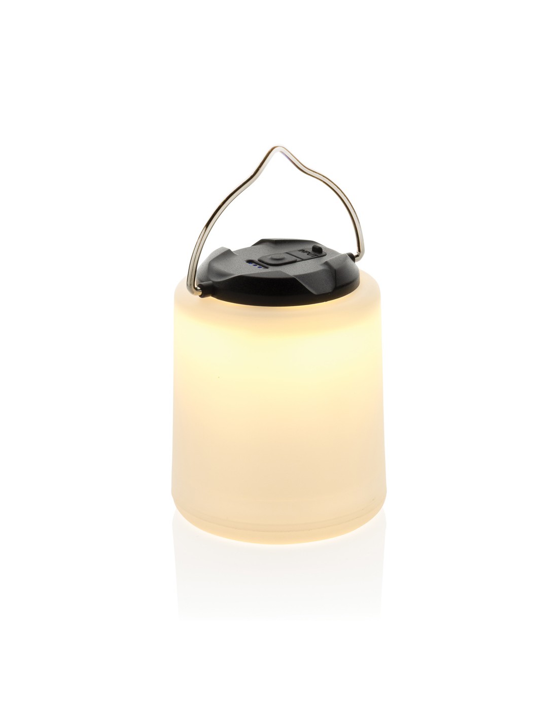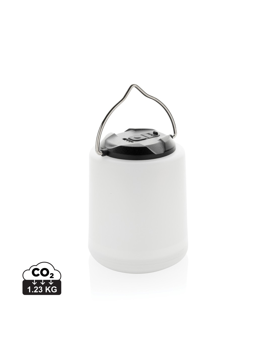 Limio RCS Recycled plast bærbar genopladelig bordlampe er en alsidig belysningsløsning til både indendørs og udendørs brug. Den er designet til at stå på et bord eller hænges op efter behov og har et genopladeligt batteri, der oplades via USB-C, leverer op til 4 timers belysning og oplades fuldt på kun 2 timer. LED lyset giver op til 300 lumen og har tre lysindstillinger: stærk, dæmpet og blinkende, så den passer til forskellige belysningsbehov. Med en IPX4 vandtæthedsklasse er den velegnet til brug i våde omgivelser. Kabinettet er fremstillet af RCS certificeret genanvendt ABS plast. RCS (Recycled Claim Standard) er en standard, der verificerer det genanvendte indhold i et produkt gennem hele forsyningskæden. Samlet genanvendt indhold: 50 % baseret på den samlede vægt af produktet. Denne lampe er PVC-fri og emballeret i en FSC certificeret kraftæske.