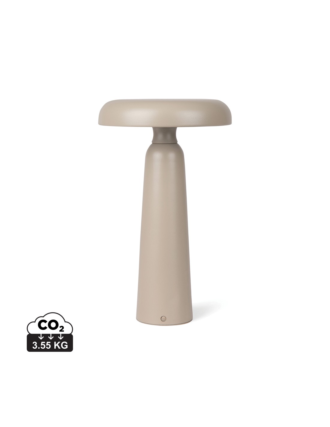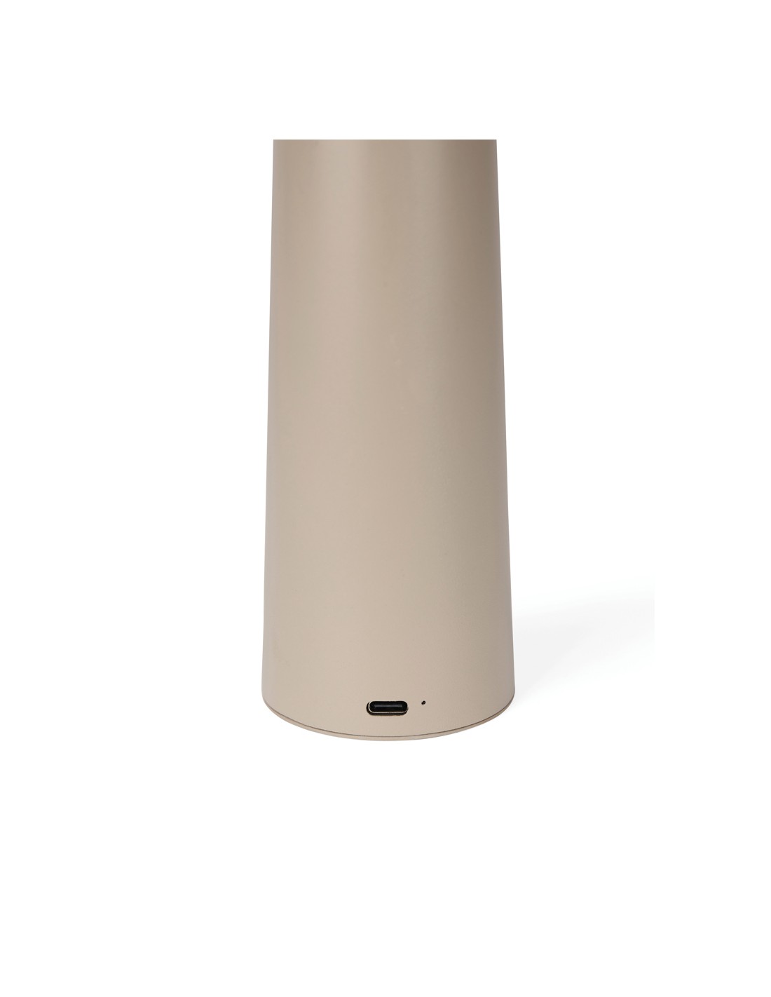 En kompakt lampe med et moderne design, der tilføjer både karakter og stil. Fremstillet af metal og genanvendt ABS. Lampen har en touch-funktion på toppen, der skifter mellem varmt lys, hvidt lys og varmt hvidt lys. Den kan genoplades via USB-C, 30 cm TPE Type-C til USB-A opladerkabel medfølger, og giver op til 8 timers belysning. Certificeret af RCS (Recycled Claim Standard), som garanterer, at hele forsyningskæden for genanvendte materialer er certificeret. Det samlede genanvendte indhold er baseret på produktets samlede vægt. Dette produkt indeholder 7% RCS certificeret genanvendt ABS.