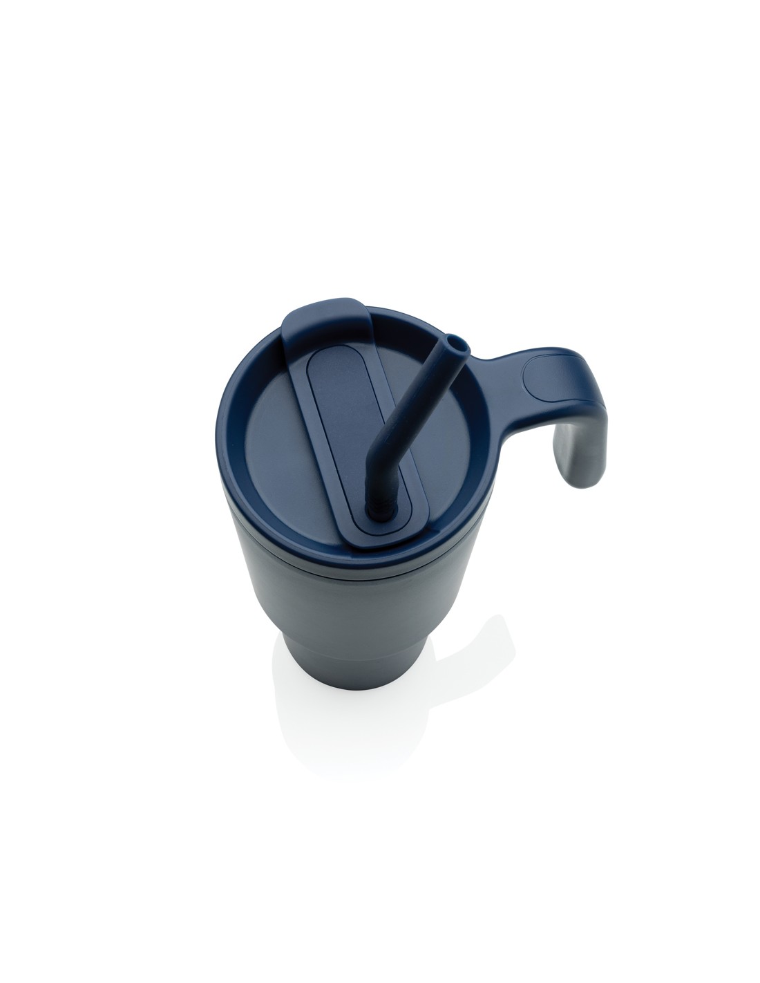 Det mest populære krus er nu velegnet til perfekt 360 graders rundtryk. En 900ml tumbler designet til miljøvenlig hydrering, lavet af genbrugsmaterialer. Uanset om du arbejder, træner eller rejser, er denne tumbler din perfekte følgesvend. Det innovative låg har en roterende hætte med tre positioner: en spildsikker sugerørsåbning, en drikketud og et fuldt forseglet låg. Det ergonomiske håndtag med komfortgreb sikrer, at den er nem at bære, og den slanke bund passer til de fleste kopholdere i biler. Må kun vaskes i hånden. BPA-fri. Kapacitet: 900ml. Inkluderer FSC® certificeret kraft gaveemballage. Samlet genanvendt indhold: 36% baseret på varens samlede vægt.
