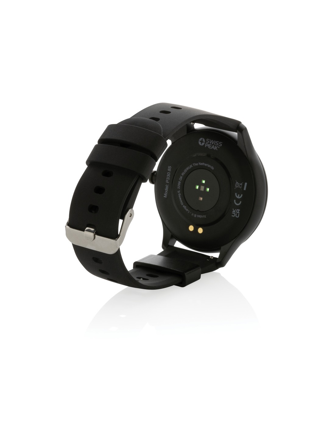 Moderne højtydende ur med 1,28" rund, hurtigt reagerende fuld touch-skærm, der holder styr på dine aktiviteter hele dagen lang. Display med høj opløsning. Fremstillet med RCS-certificeret (Recycled Claim Standard) genanvendt TPU-armbånd og zinklegeret ramme. Samlet genanvendt indhold: 23% baseret på den samlede vægt. RCS-certificering sikrer en fuldstændig certificeret forsyningskæde af de genanvendte materialer. Funktionerne omfatter: Skridttæller, kalorier, distance, multisport (24 typer) tracking vækkeur, puls tracking, blodtryksmonitorering, søvnmonitor kalenderopdateringer. notifikationer: SMS, Facebook, Skype, WhatsApp, Twitter osv. Kompatibel med Android 4.4 og IOS 8.0 og nyere. IPX 68 vand- og støvtæt. BT 5.0. Standbytid på 25 dage og driftstid på op til 7 dage. Inklusive opladerclips til opladning af uret. Pakket i FSC® mix kraft emballage. Artikel og tilbehør 100% PVC-fri.