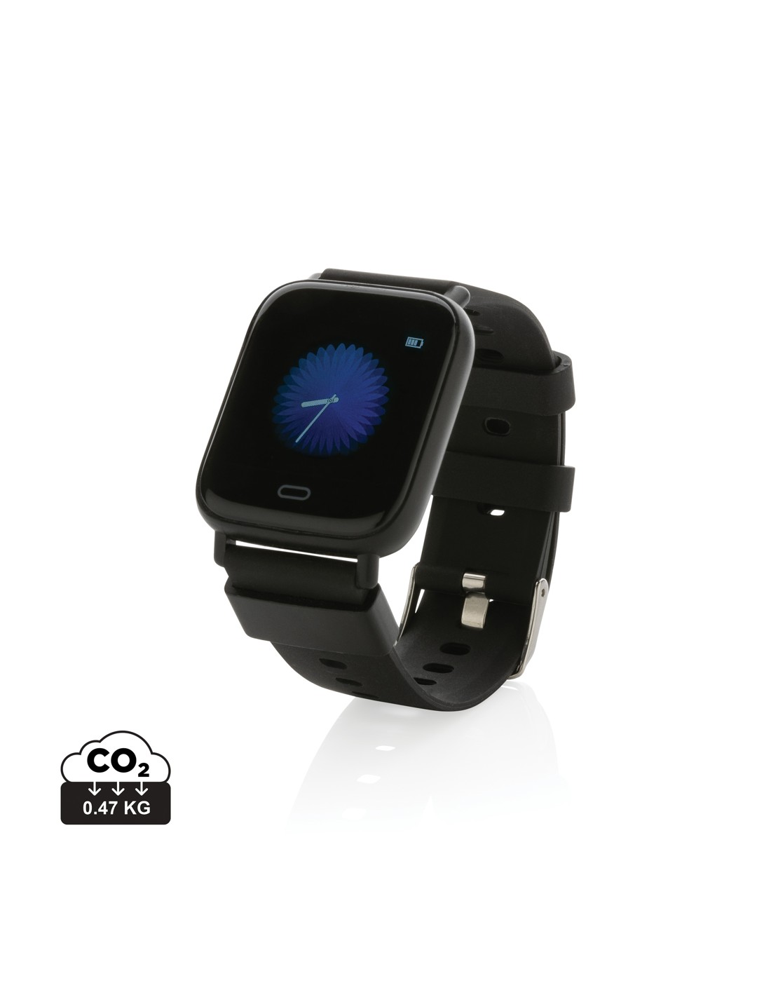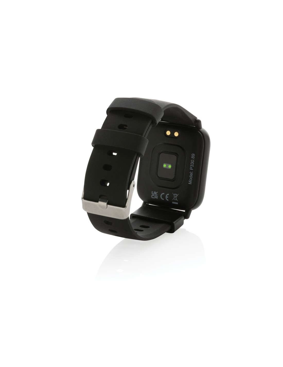 Moderne livsstilsur med 1,3" punkts berørings farveskærm, til at spore dine aktiviteter hele dagen lang. Lavet med RCS (Recycled Claim Standard) certificeret genanvendt TPU armbånd og ABS-ramme. Samlet genanvendt indhold: 31% baseret på samlet artikelvægt. RCS-certificering sikrer en fuldstændig certificeret forsyningskæde af de genanvendte materialer. Funktionerne inkluderer: Trintælling, kalorier, afstand, multi-sport tracking vækkeur, pulssporing, blodtryksovervågning, søvnmonitor, kalenderopdateringer, foretag og modtag opkald, meddelelser: SMS, Facebook, Skype, WhatsApp, Twitter osv. Kompatibel med Android 4.4 og IOS 8.0 og nyere. IPX 67 vand- og støvtæt. BT 5.0. Standby tid på 15 dage og funktions tid op til 5 dage. Inklusive klip oplader til opladning af uret. Pakket i FSC® mix kraft emballage. Vare og tilbehør 100% PVC fri.