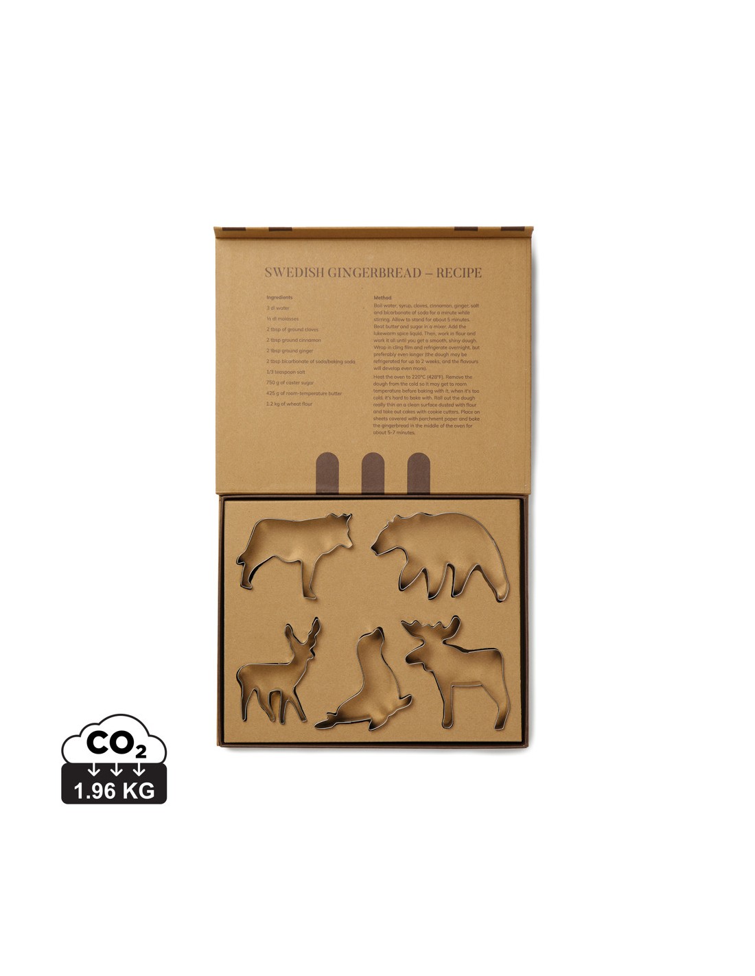 Bag dig ind i den nordiske vildmark med vores 5-dels udstikkersæt i rustfrit stål af høj kvalitet. Hver udstikker har en anden dyreform, der findes i Skandinavien. Holdbare og rengøringsvenlige udstikkere med skarpe kanter til præcise udskæringer. Pakket i en stilfuld gaveæske, og på æskens inderste låg er der en svensk opskrift på ingefærkager, hvilket tilføjer et autentisk skandinavisk touch til dine bageeventyr.