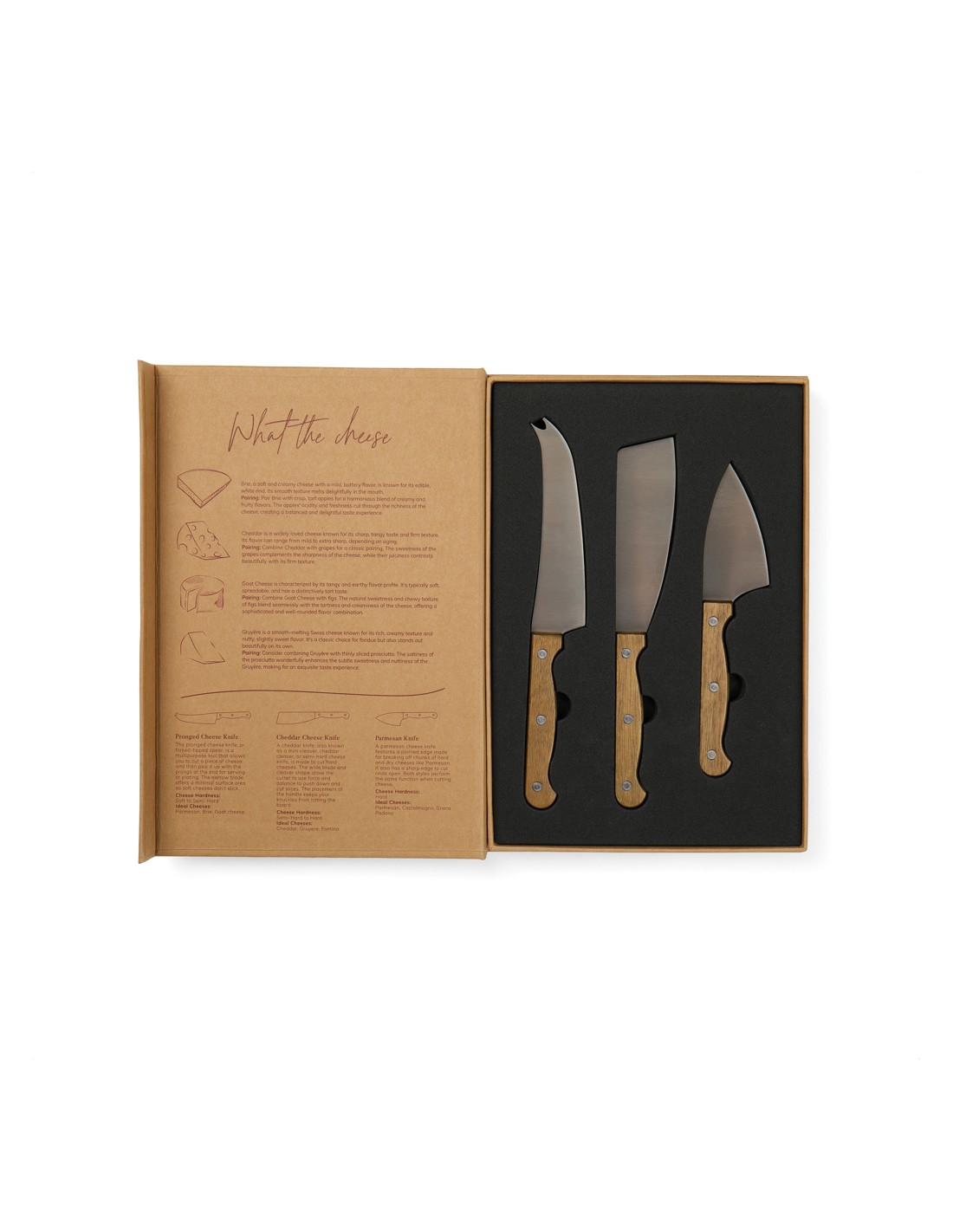 Oplev ostens rige verden med Story of cheese sættet, som er elegant pakket i en gaveæske, der ligner en klassisk bog. Sættet indeholder en ostekniv, en kniv til cheddarost og en kniv til parmesanost. Alt sammen fremstillet af rustfrit stål og akacietræ. Den unikke indpakning beskytter ikke kun dine produkter, men fortæller også en fængslende historie om ost, hvilket gør det til en perfekt gave til enhver lejlighed. Dette sæt er ideelt til osteentusiaster og kombinerer funktionalitet med et historiefortællende design, der gør enhver ostesmagning til en mindeværdig rejse. Gaveæsken er fremstillet af FSC®-certificeret papir.
