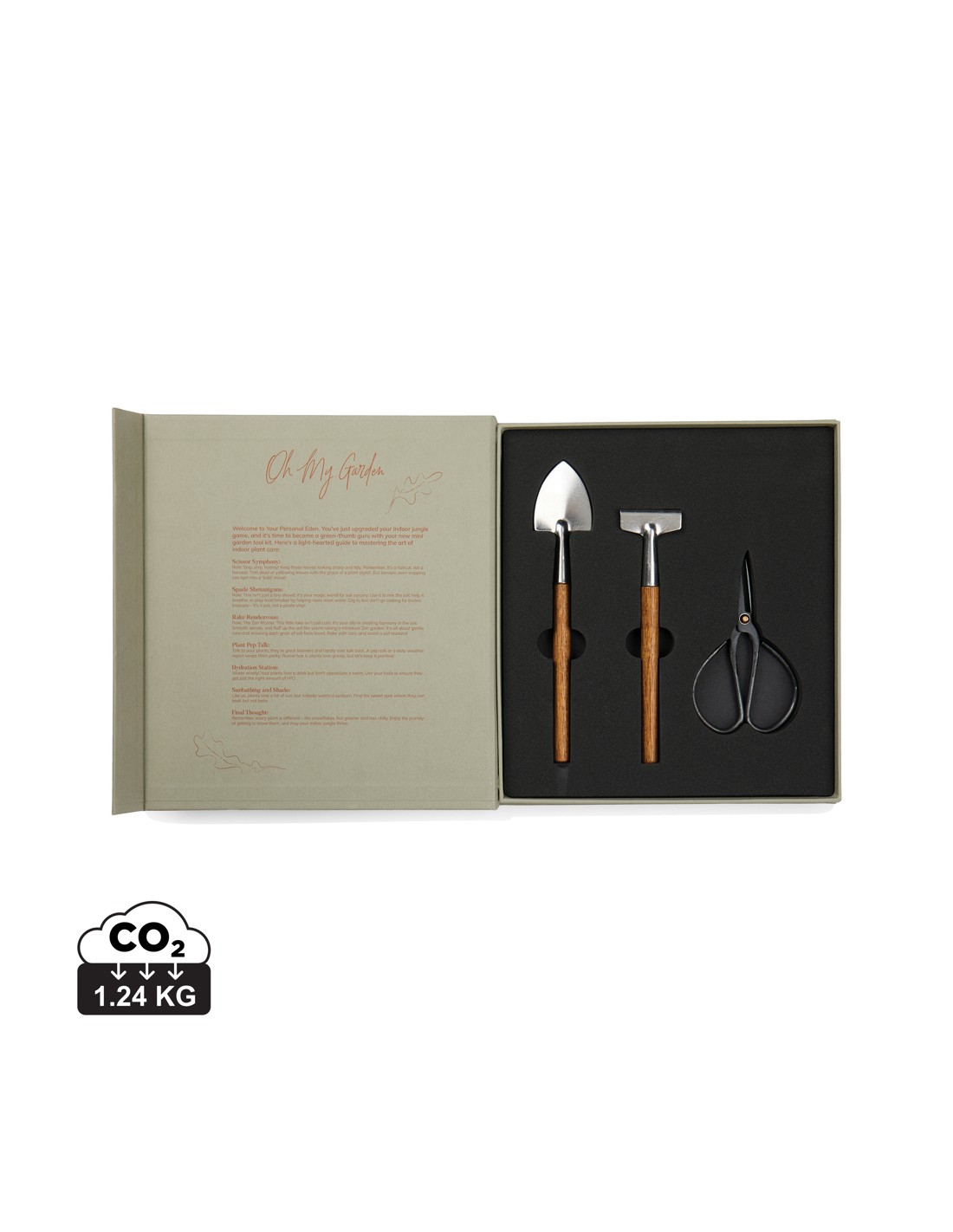 Oplev den fortryllende verden af indendørs havearbejde med Story of garden sættet, smukt pakket i en gaveæske, der ligner en klassisk bog. Sættet indeholder en rive og en spade i rustfrit stål og akacietræ samt en klassisk urtesaks i robust jern. Disse redskaber vil hjælpe dig med at passe dine indendørs planter med lethed. Den unikke emballage beskytter ikke kun dine redskaber, men fortæller også en fængslende historie, hvilket gør den til en perfekt gave til planteelskere. Gaveæsken er fremstillet af FSC®-certificeret papir.