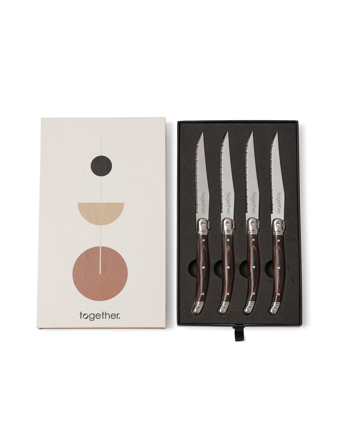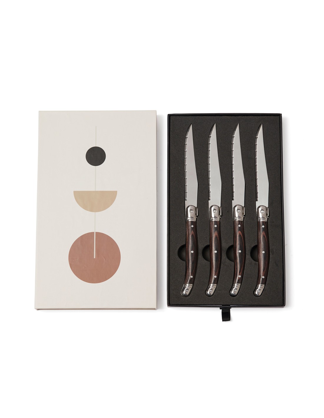 Kødknive i høj kvalitet i typisk franskinspireret bistrostil. Håndtag i sort pakkatræ og stålblade af rustfrit stål i høj kvalitet. Bladet har en fin slibning, så du kan skære gennem fødevarer med så lille modstand som muligt. Et sæt bestående af fire knive, som du nemt kan kombinere med dine gafler derhjemme. Pakket i en eksklusiv gaveæske.