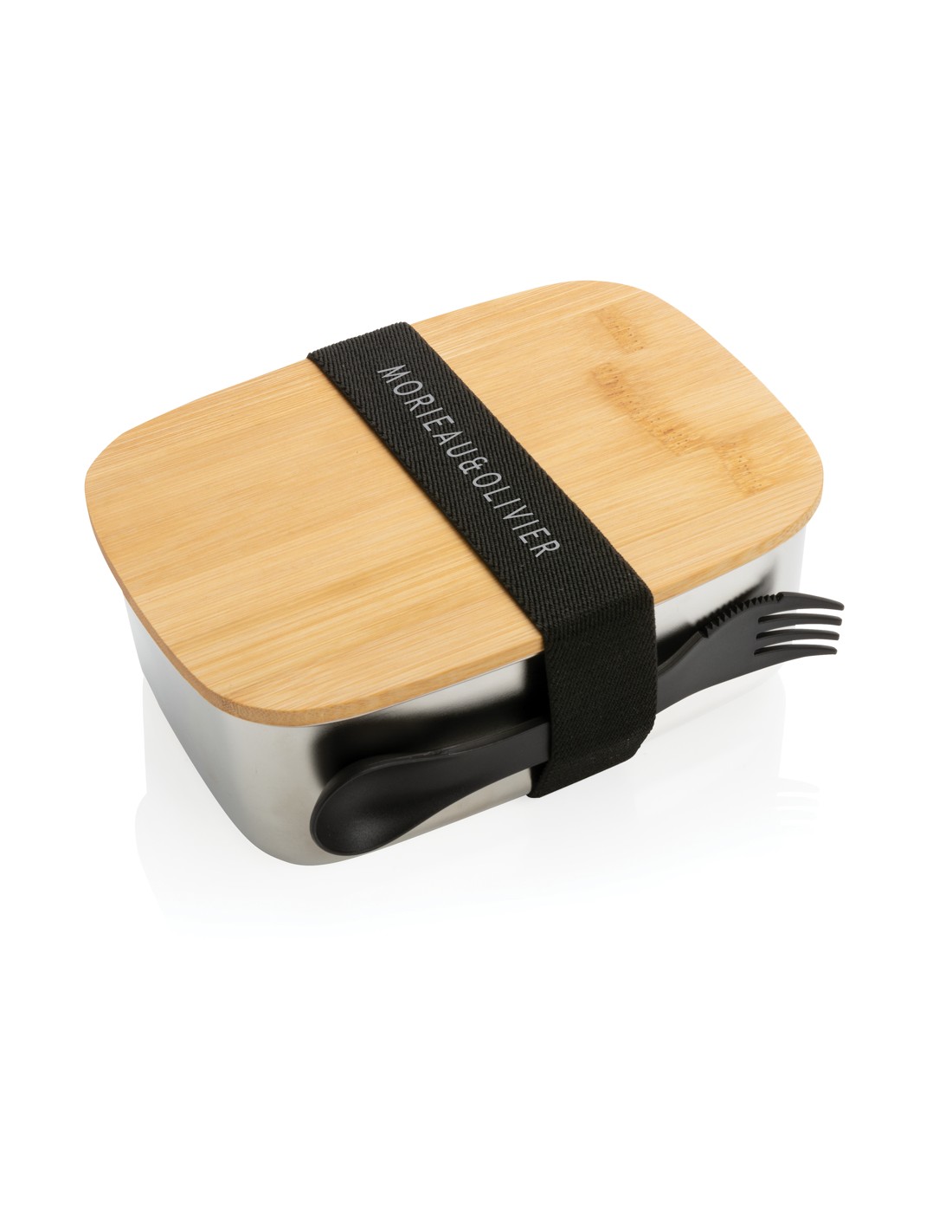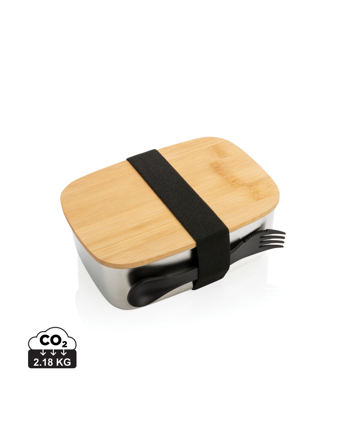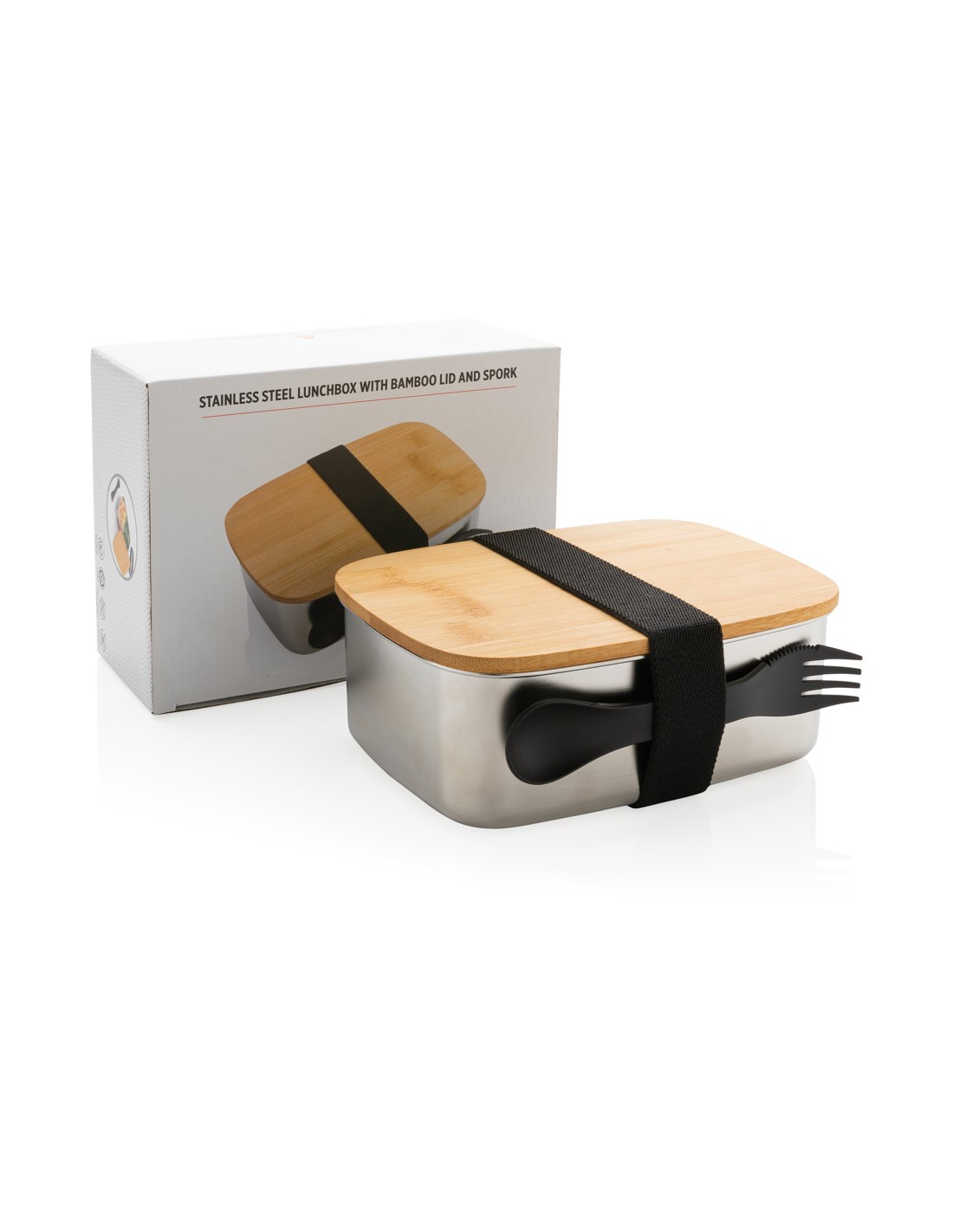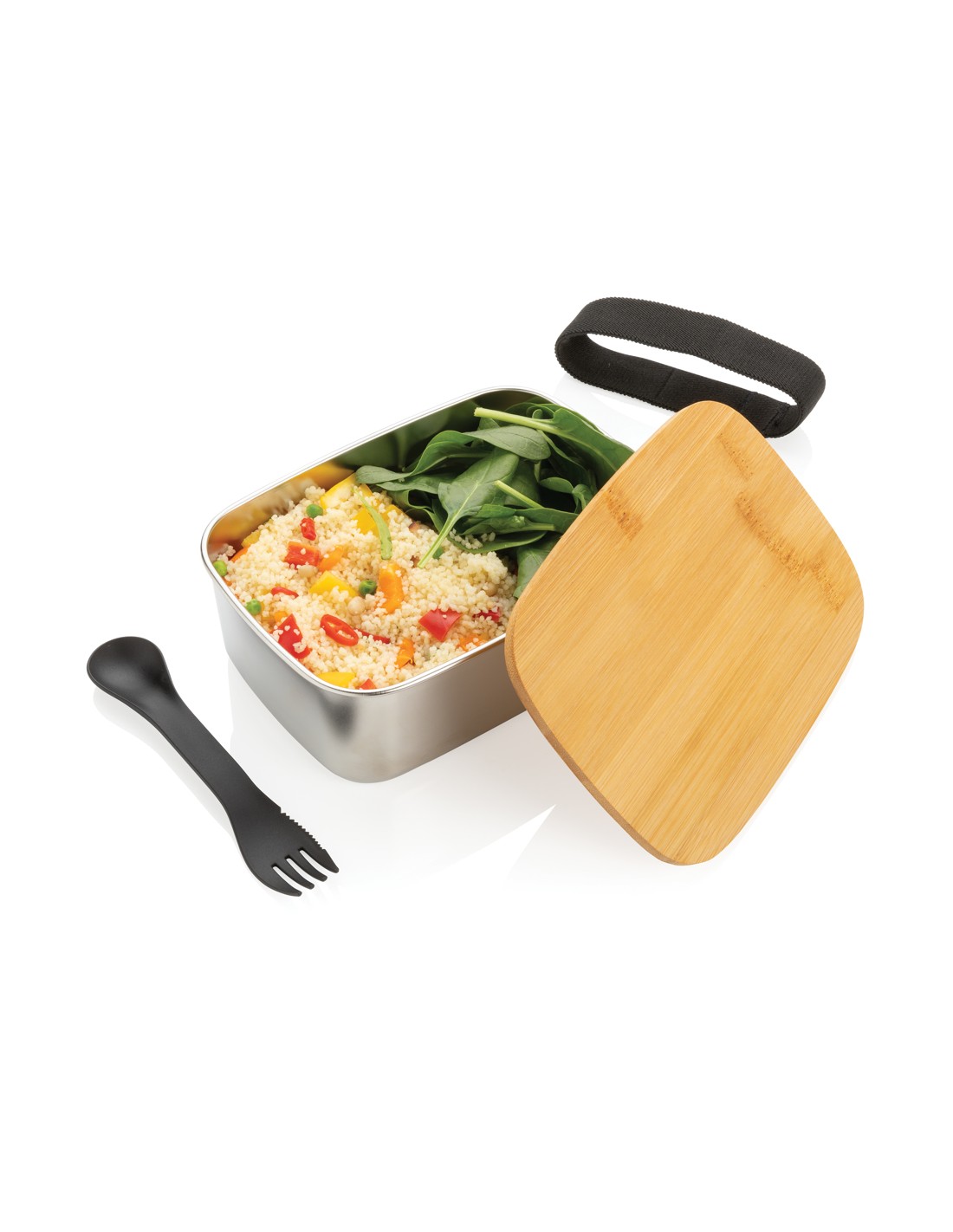 Rustfrit stål madkasse med bambuslåg og "spork"