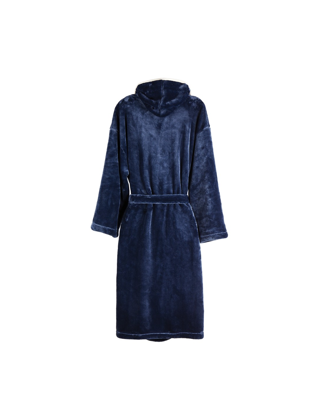 Hyggelig og blød badekåbe i luksusplys med stor hætte og dekorative piping. To lommer foran og bælte i taljen. Morgenkåben er fremstillet af 68 % verificeret genanvendt materiale. Vi bryder os ikke om at transportere luft, så vi har valgt at vakuumpakke denne morgenkåbe for at reducere vores CO2-fodaftryk. OEKO-TEX Standard 100 betyder, at badekåbens materiale opfylder en række kriterier vedrørende produktsikkerhed. Fremstillet med GRS (Global Claim Standard), GRS-certificeringen sikrer, at hele forsyningskæden af de genanvendte materialer er certificeret. Det samlede genanvendte indhold er baseret på den samlede produktvægt. Størrelse S/M.