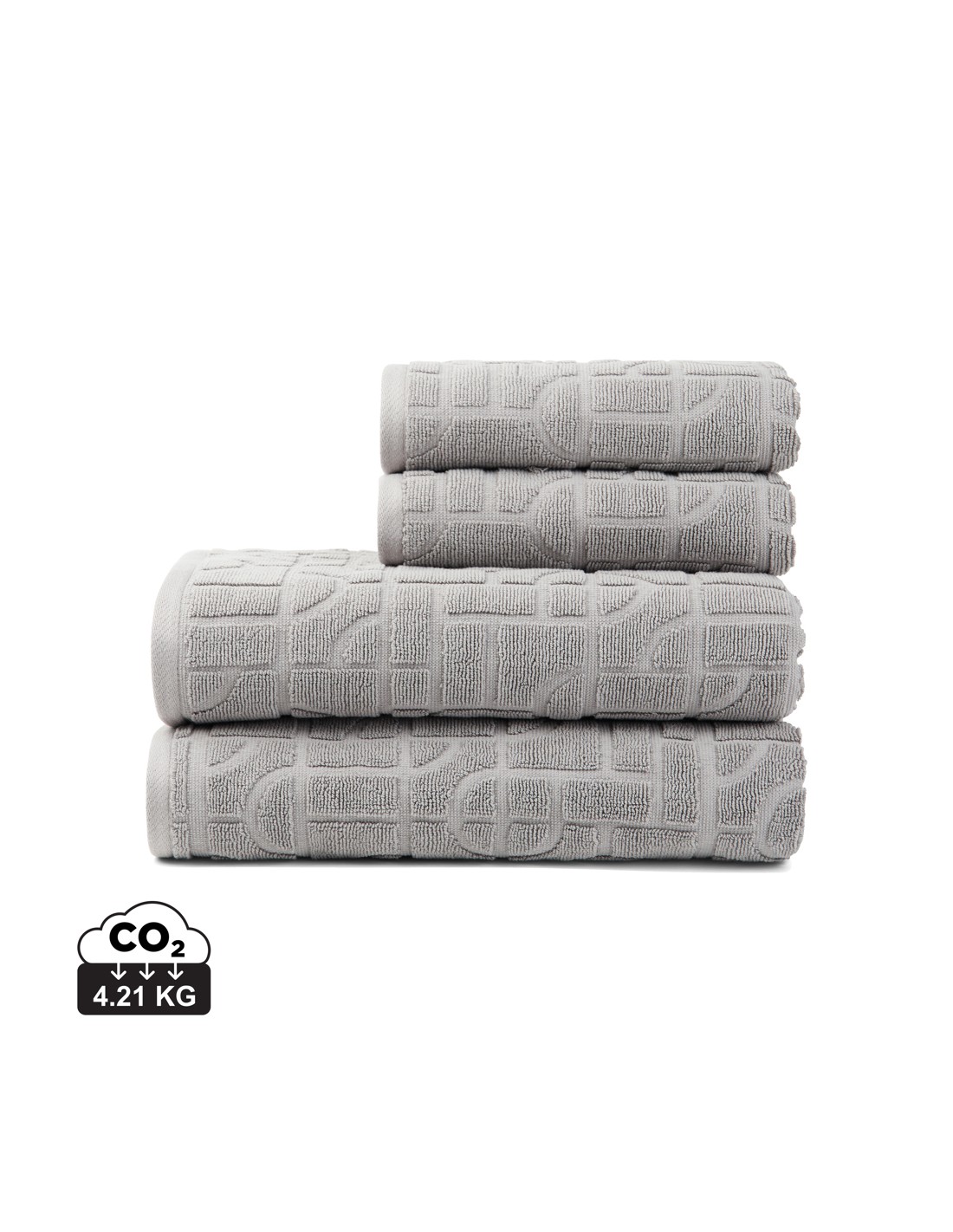 Dette sæt med to store håndklæder (135x65 cm) og to små håndklæder (65x40 cm) er en luksuriøs tilføjelse til dit badeværelse, fremstillet af 100 % økologisk bomuld, som sikrer både funktionalitet og stil. Med en plysvægt på 500 g/m² har håndklæderne en god sugeevne og blødhed. Det diskrete geometriske mønster tilføjer et strejf af elegance til din badeværelsesindretning, mens det økologiske bomuldsmateriale giver en kvalitetsfølelse uden at gå på kompromis med komforten. Hvert sæt er omhyggeligt pakket i FSC®-certificeret kraftemballage. Organic Content Standard (OCS) verificerer økologisk dyrket materiale og sporer det fra kilde til slutprodukt. Dette produkt indeholder 99 % OCS-certificeret økologisk bomuld.