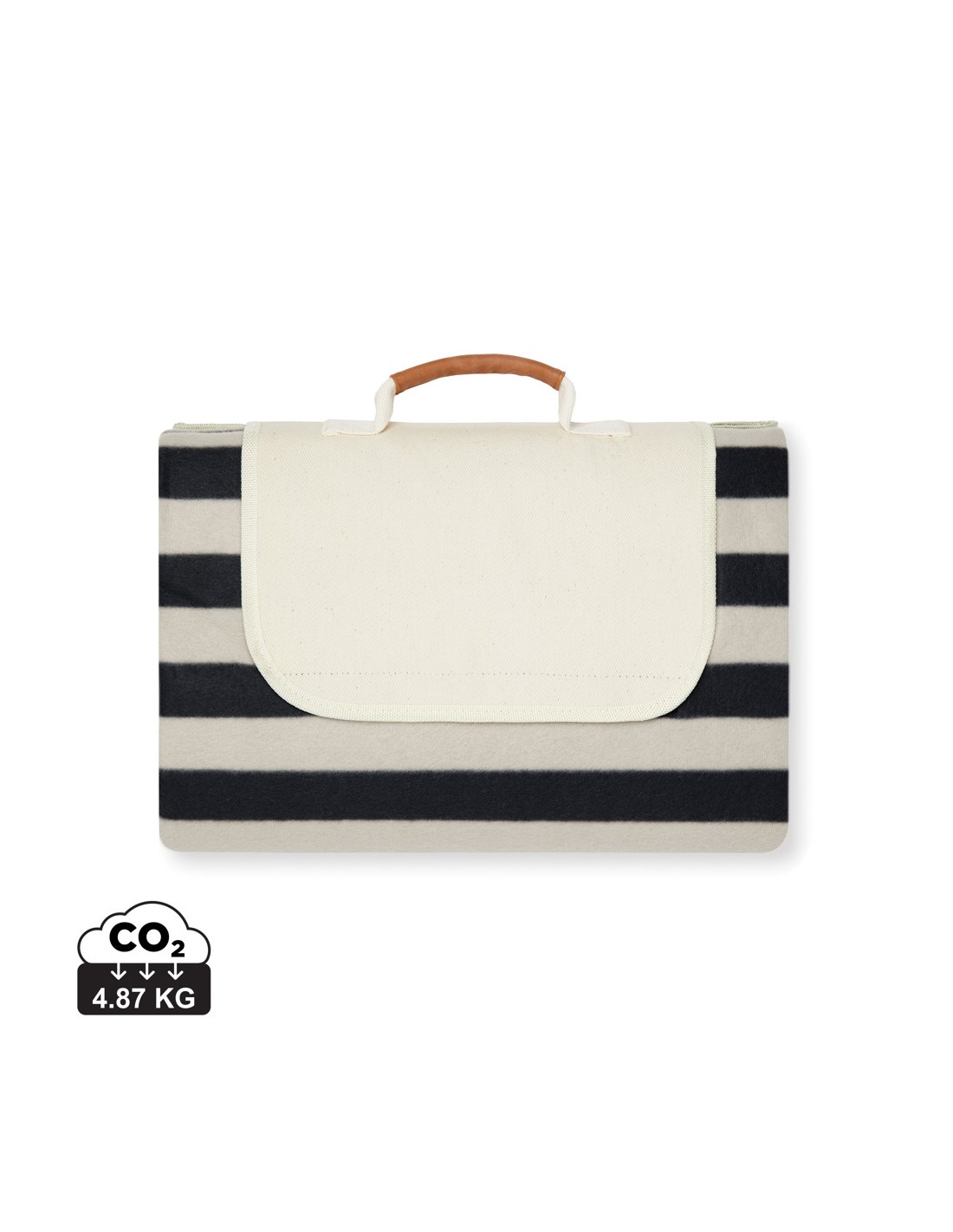 Picnictæppe i blød fleece med bomuldscanvas og detaljer i PU. Den smarte konstruktion gør det nemt at folde sammen og tage med. Fleecen er fremstillet af GRS-certificeret genanvendt PET. Bagsiden er lavet i PEVA, som er vandafvisende. Certificeret af GRS (Global Recycled Standard), GRS-certificering garanterer, at hele forsyningskæden for de genanvendte materialer er certificeret. Det samlede genanvendte indhold er baseret på den samlede produktvægt. Dette produkt indeholder 54% GRS-genanvendt fleece.