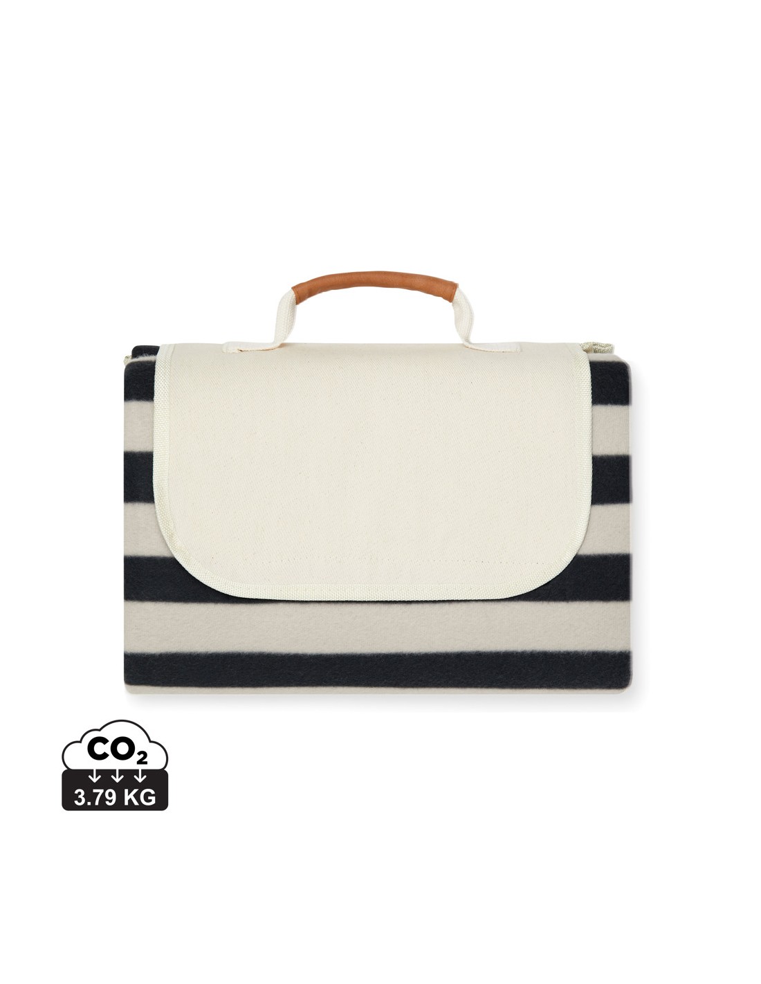 Picnictæppe i blød fleece med bomuldscanvas og detaljer i PU. Den smarte konstruktion gør det nemt at folde sammen og tage med. Fleecen er fremstillet af GRS-certificeret genanvendt PET. Bagsiden er lavet i PEVA, som er vandafvisende. Certificeret af GRS (Global Recycled Standard), GRS-certificering garanterer, at hele forsyningskæden for de genanvendte materialer er certificeret. Det samlede genanvendte indhold er baseret på den samlede produktvægt. Dette produkt indeholder 52% GRS-genanvendt fleece.