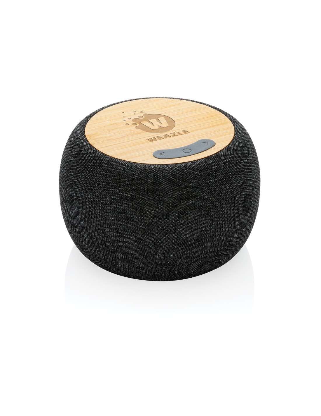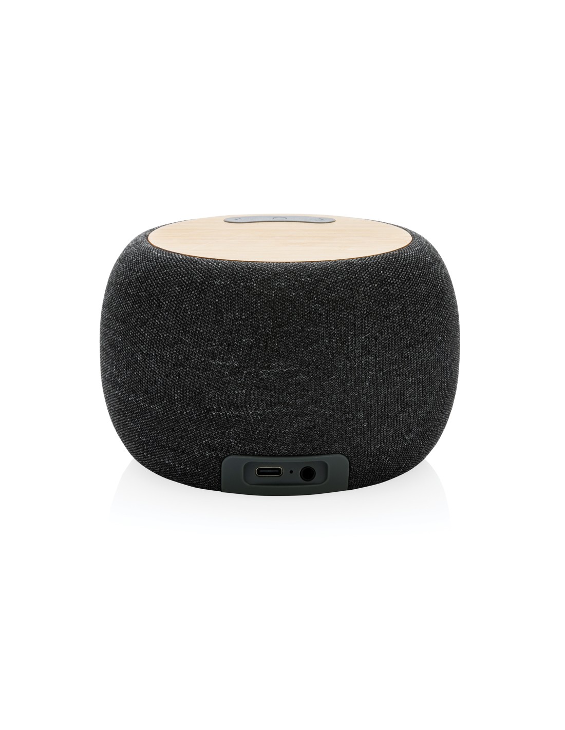 5W trådløs højttaler med krystalklar lyd. Lavet med FSC® 100% bambus, RCS (Recycled Claim Standard) certificeret genanvendt ABS og PET. Samlet genbrugsindhold: 51% baseret på samlet artikelvægt. RCS-certificering sikrer en fuldstændig certificeret forsyningskæde af de genanvendte materialer. Højttaleren er udstyret med et 1200 mAh batteri, for at sikre op til 6 timers spilletid, og BT5.3 for nem forbindelse, og klar lyd. Tilslutningsområde op til 10 meter. Med mikrofon til at besvare opkald. Pakket i FSC® mix kraftboks. Inklusive GRS-certificeret genanvendt TPE-ladekabel. Vare og tilbehør 100% PVC fri.