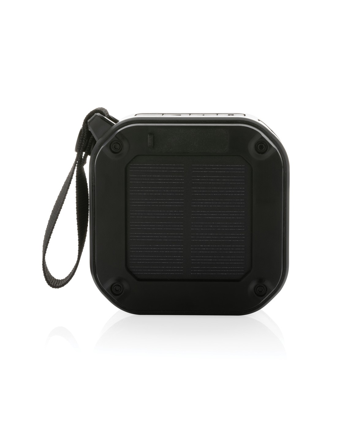 Kraftig 3W trådløs højttaler med integreret solpanel på bagsiden, fremstillet af RCS certificeret genanvendt ABS. Samlet genanvendt indhold: 38 % baseret på den samlede vægt. RCS certificering sikrer en fuldstændig certificeret forsyningskæde for de genanvendte materialer. Højttaleren bruger monokrystallinske solpaneler af høj kvalitet med 19 % konverteringsrate. Opladningshastigheden afhænger af forholdene. Opladningshastighed sol: 5V/80mA. Højttaleren er udstyret med et 400 mAh batteri for at sikre op til 4 timers spilletid og BT5.3 for problemfri forbindelse og klar lyd. Forbindelsesrækkevidde op til 10 meter. Med mikrofon og pick up-funktion til at besvare opkald. . Med integreret 30 lumen LED-lys. Pakket i FSC mix FSC® kasse. Inklusive RCS certificeret genanvendt TPE opladerkabel. Varen og tilbehør 100 % PVC-fri. IPX 5 vandtæt.