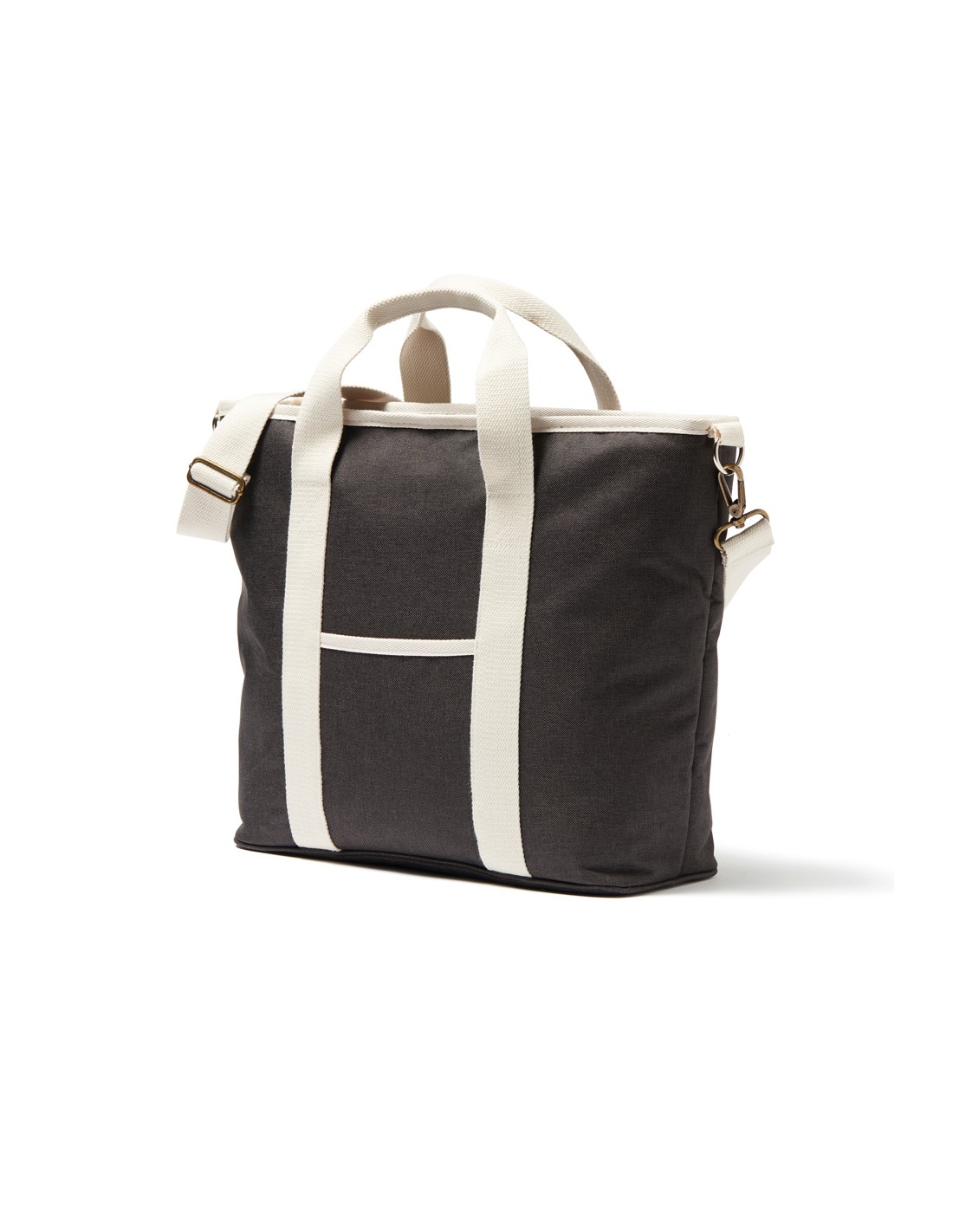 Køletaske, der er meleret tone i tone med detaljer i imiteret læder og bomuld, så den er lige så smuk som en almindelig taske, og du kan holde picnic med stil. Der er også et lille rum på ydersiden af køletasken, så der også er plads til andre ting. Den tykke PEVA-polstring sikrer, at kulden holdes i lang tid. Den er også nem at rengøre og tørre efter brug. Med en justerbar skulderrem og dobbelt håndtag har du forskellige måder at bære køletasken på.