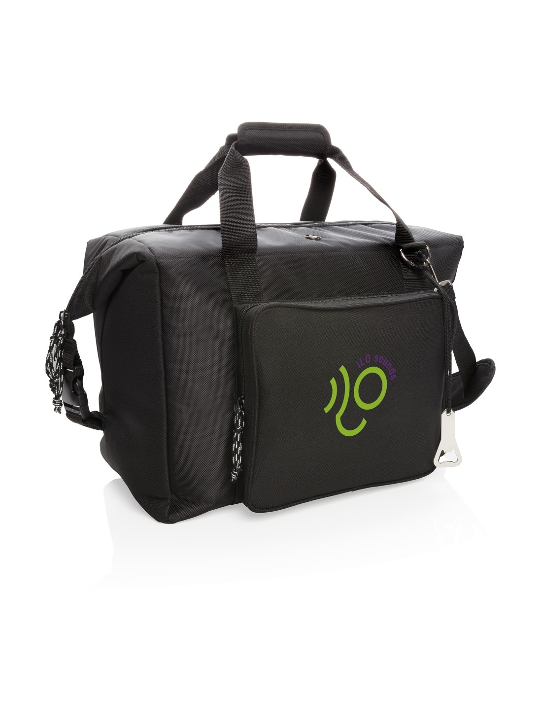 Luksus 1.680D og 600D polyester indkøb/køletaske med ekstra stort rum, lynlås lukning og pålynet frontlomme. Denne taske kan nemt forvandles til en duffel taske ved at lukke sidestropperne. Kæmpe 40L rum, kan indeholde op til 10 x 1.5L flasker eller 52 dåser. Dobbelt forstærket håndtag. Aftagelig skulderstrop. Indeholder flaske åbner. PEVA isolation.