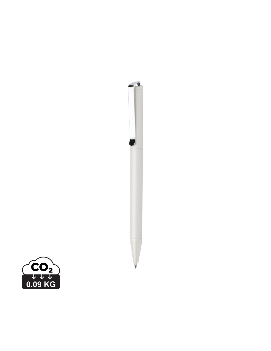 Udforsk Xavi RCS certificeret pen i genanvendt aluminium. Denne pen blander stil og funktionalitet uden problemer, hvilket gør den til et gennemtænkt valg til dine skrivebehov. Med drejemekanisme og blåt Dokumental-blæk. Skrivebredde 1 mm, skrivelængde 1.200 meter. Samlet genanvendt indhold baseret på varens vægt: 28%.