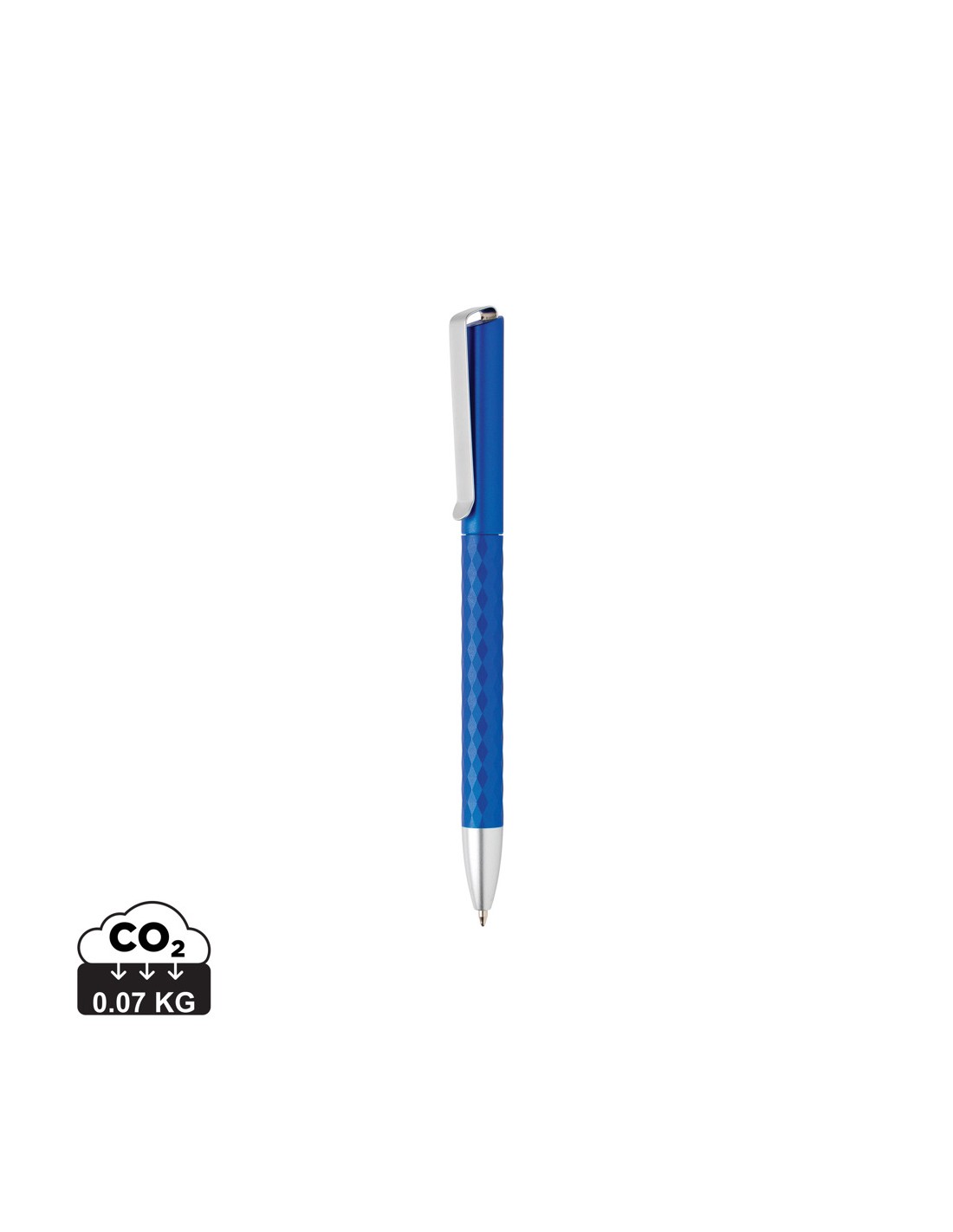 Unik ballpoint med metal clip og fascinerende diamant mønster. Cirka 1200 meters skrivelængde med den tyske German Dokumental blå blæk refill. TC kugle der giver ultra let og behagelig skrivning.