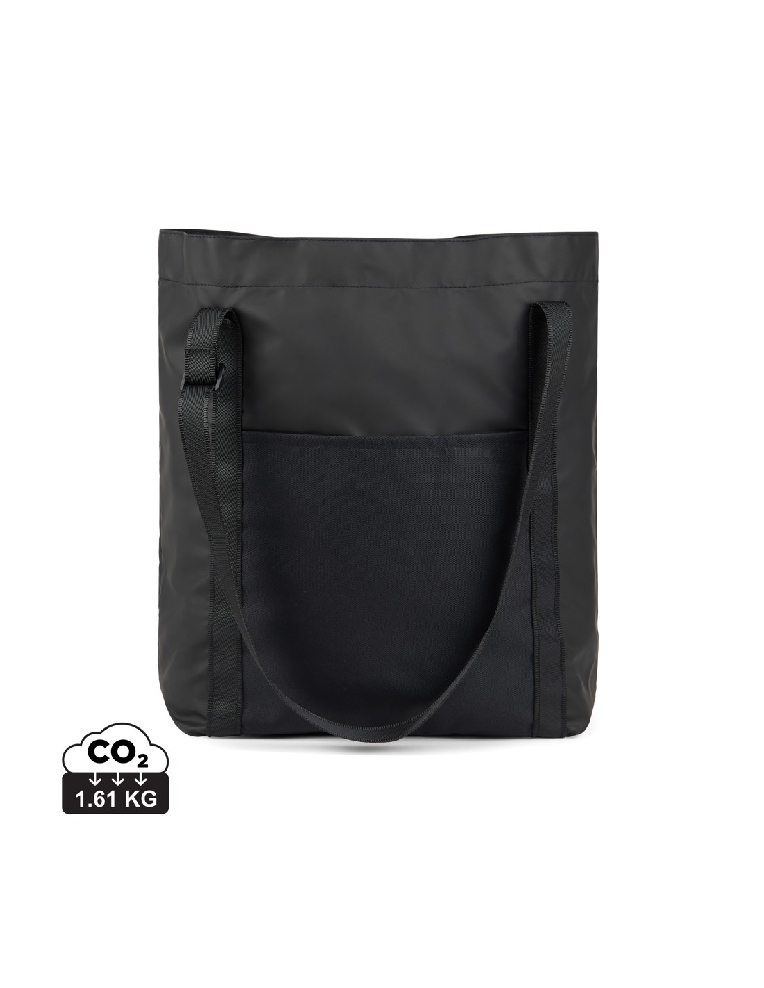 Denne taske er en perfekt rejseledsager og er fremstillet af superlet GRS certificeret polyester med en lækker PU belægning. Du skal blot folde den sammen og fastgøre den med den smarte strop og spænde, så den kan opbevares kompakt, når den ikke er i brug. Tasken har justerbare stropper, så den kan holdes i hånden eller bæres over skulderen. Tasken har en praktisk yderlomme og en mindre inderlomme til dine vigtigste ting. Disse alsidige tasker er ikke kun nemme at bære, men er også designet til at kunne foldes sammen og opbevares kompakt i din bagage, så du får praktisk ekstra opbevaring uden at blive tynget ned. Certificeret af GRS (Global Recycled Standard), GRS-certificering garanterer, at hele forsyningskæden for de genanvendte materialer er certificeret. Det samlede genanvendte indhold er baseret på den samlede produktvægt. Dette produkt indeholder 51 % GRS-certificeret genanvendt polyester.