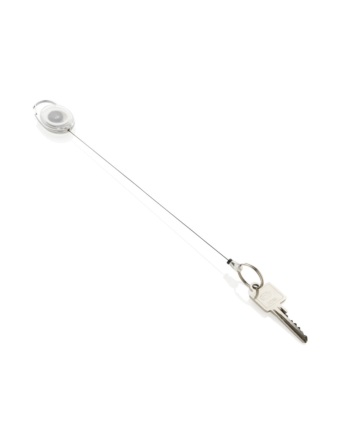 Nøglering med rulleclips lavet af RCS-genanvendt ABS og zinklegering. Ideel til kontoret, messen eller på skiferien. Med 60 cm snor til fastgørelse af badge for nem adgang. Med karabinhage til at fastgøre til taske eller tøj. Samlet genanvendt indhold: 34% baseret på varens samlede vægt. RCS-certificering sikrer en fuldstændig certificeret forsyningskæde af de genanvendte materialer. Pakket i papirpose.