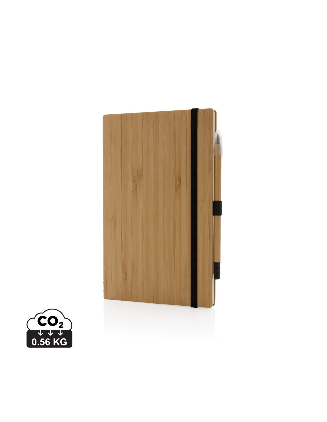 Denne smukke FSC® certificerede bambus notesbog er lavet af bæredygtig bambus med 80 ark/ 160 sider af 70 gsm genbrugspapir. Sættet indeholder en evigheds blyant, der vil overleve omkring 100 blyanter! Den har en skrivelængde på op til omkring 20.000 meter ved hjælp af en grafitspids til at producere en grafitlinje. Ikke alene skriver den som en blyant, men linjerne kan slettes. Med FSC® certificeret bambus i en FSC® kraft gaveæske.