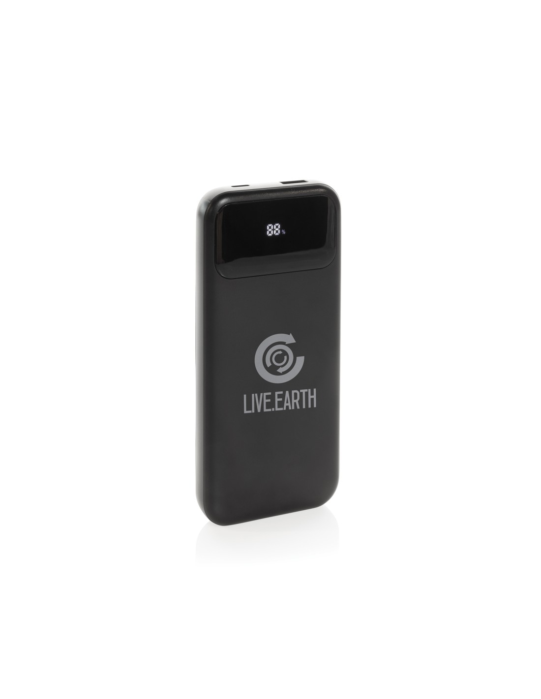 Alt i én hurtigopladende powerbank med integrerede kabler og strømdisplay. Powerbanken på 10.000 mah leveres med et integreret type C- og et integreret Apple Lightning kabel, så du nemt kan slutte den til din enhed og begynde at hurtigoplade din mobile enhed. Med en ekstra type C-port og en USB A-port til at tilslutte dit eget opladningskabel. Når powerbanken er fuldt opladet, giver den dig nok energi til at oplade din mobiltelefon op til fire gange. Powerbanken indeholder et langtidsholdbart klasse A 10.000 mAh litiumpolymerbatteri. Fremstillet af genanvendt ABS og genanvendt TPE. Samlet genanvendt indhold: 23% baseret på varens samlede vægt. RCS certificering sikrer en fuldstændig certificeret forsyningskæde for de genanvendte materialer. Med digitalt display, der viser den resterende strøm. Pakket i FSC® kraft-emballage. Fri for PVC. USB-A-udgang 5V⎓3,0A, 9V⎓2A, 12V⎓1,5A; USB-C-udgang 5V⎓3,0A, 9V⎓2,22A, 12V⎓1,67; Type-C-indgang 5V⎓3,0A, 9V⎓2A, 12V⎓1,5A; Indbygget USB-C-kabel Udgang: