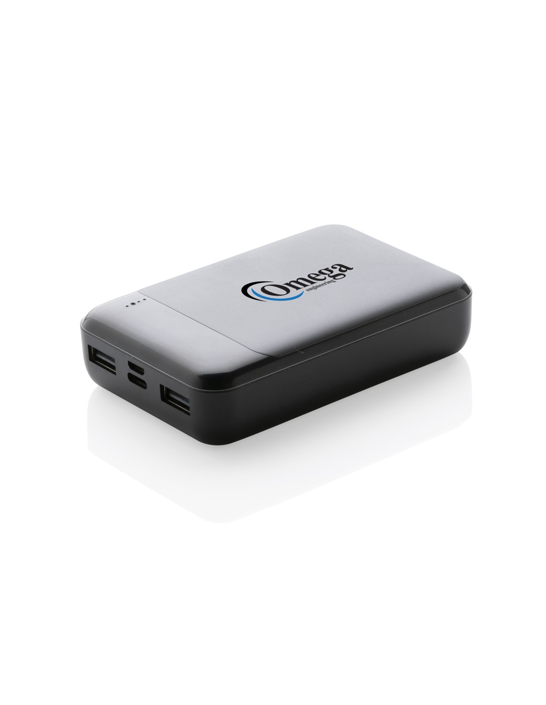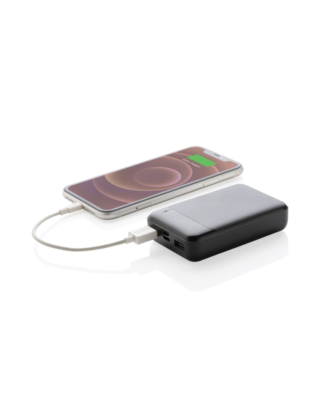 10.000 mAh powerbank i lommestørrelse, hvor kabinettet er lavet af RCS certificeret genanvendt ABS plast. RCS (Recycled Claim Standard) er en standard til kontrol af genanvendt indhold i et produkt i hele forsyningskæden. RCS er den standard, der bruges, når en del af varen er fremstillet af genbrugsmaterialer.Total genanvendt indhold: 20%, baseret på total vægt. Når den er fuldt opladet, giver powerbanken dig nok energi til at oplade din mobiltelefon op til fem gange. Powerbanken indeholder et langvarigt litium polymer batteri af høj densitet i klasse A, 10.000 mAh. Lysindikatorerne angiver det resterende energiniveau, så du altid ved, hvornår du skal oplade igen. Micro USB-indgang 5V/2A; Type-C-input 5V/2A; USB-udgang 5V/2A; Vare og tilbehør PVC fri. Herunder PVC-fri genanvendt TPE-materialeopladningskabel.