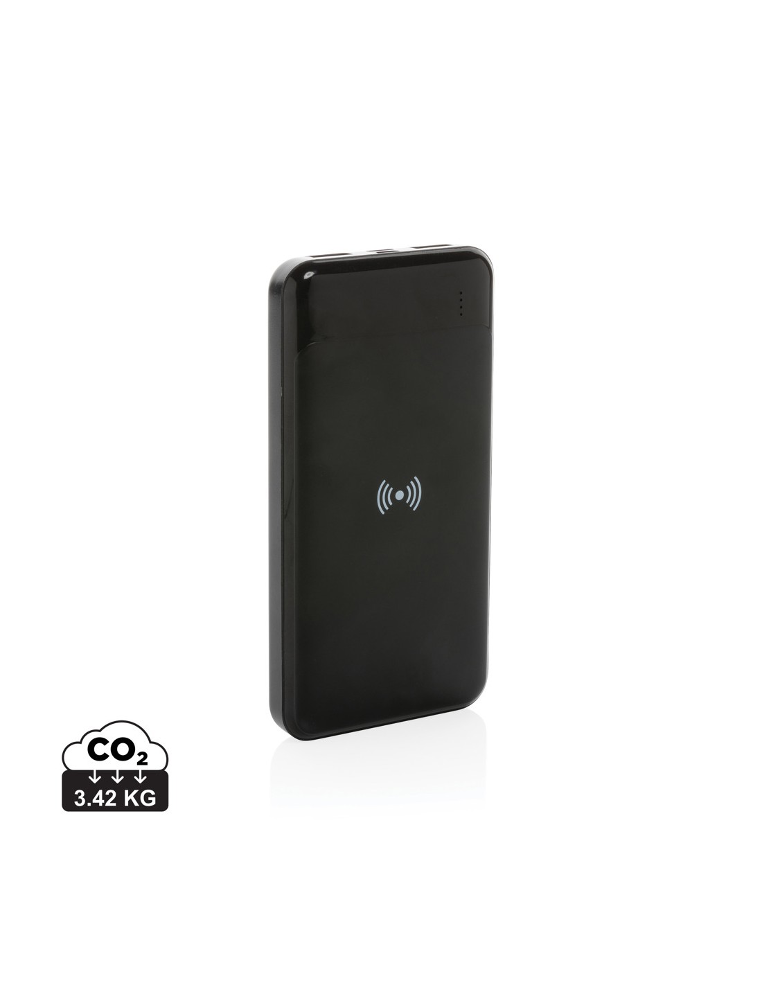 8.000 mAh powerbank med 5W trådløs oplader, hvor kabinettet er lavet af RCS-certificeret genanvendt ABS-plast. RCS (Recycled Claim Standard) er en standard til kontrol af genanvendt indhold i et produkt i hele forsyningskæden. RCS er den standard, der bruges, når en del af varen er fremstillet af genbrugsmaterialer. Total genanvendt indhold: 22%, baseret på total vægt. Når den er fuldt opladet, giver powerbanken dig nok energi til at oplade din mobiltelefon op til fire gange. Powerbank indeholder et langvarig klasse A 8.000 mAh litium polymer batteri. Lysindikatorerne angiver det resterende energiniveau, så du altid ved, hvornår du skal oplade igen. Type-C-input 5V/2A; Micro USB-indgang 5V/2A; Trådløs udgang 5W; 2x USB-udgang 5V/2A; Vare og tilbehør PVC fri. Herunder PVC-fri genanvendt TPE-materialeopladningskabel