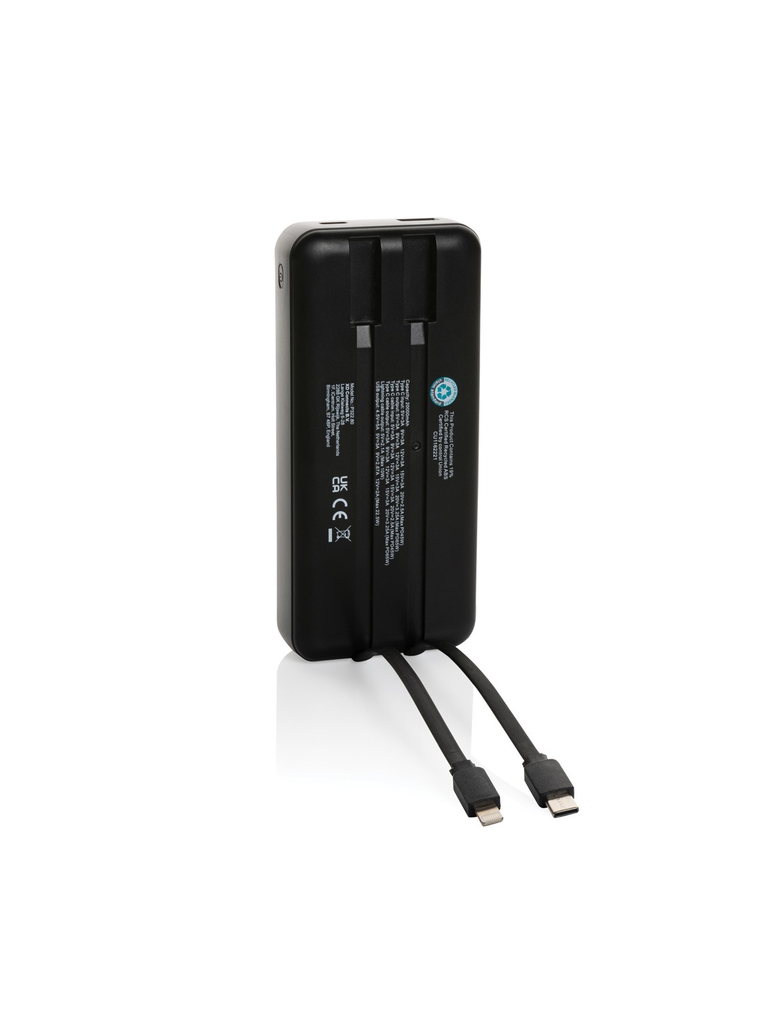 Træt af konstant at lede efter stikkontakter? Hils på 65W Supercharge Powerbank, med 20.000 mAh 20W PD. Kabinettet er lavet af RCS-certificeret genanvendt ABS-plast. RCS (Recycled Claim Standard) er en standard, der verificerer et produkts genanvendte indhold gennem hele forsyningskæden. Samlet genanvendt indhold: 13 % baseret på varens samlede vægt. Oplad nemt alle dine enheder takket være det kraftige 65W-output og de integrerede Type C- og iOS-kabler. Sig farvel til sammenfiltrede kabler og ventetid på opladninger - denne powerbank understøtter lynhurtig 45W opladning via Type C og supercharged opladning med Type C (op til 65W) og USB A (op til 22,5W). Uanset om du er en travl professionel, en studerende på farten eller en eventyrer, er denne powerbank din ultimative ledsager. Gå ikke glip af muligheden for at revolutionere din opladningsoplevelse. Sig farvel til angsten for lavt batteri og goddag til pålidelig, lynhurtig opladning med 65W Supercharge Powerbank. Med LED-skærm.