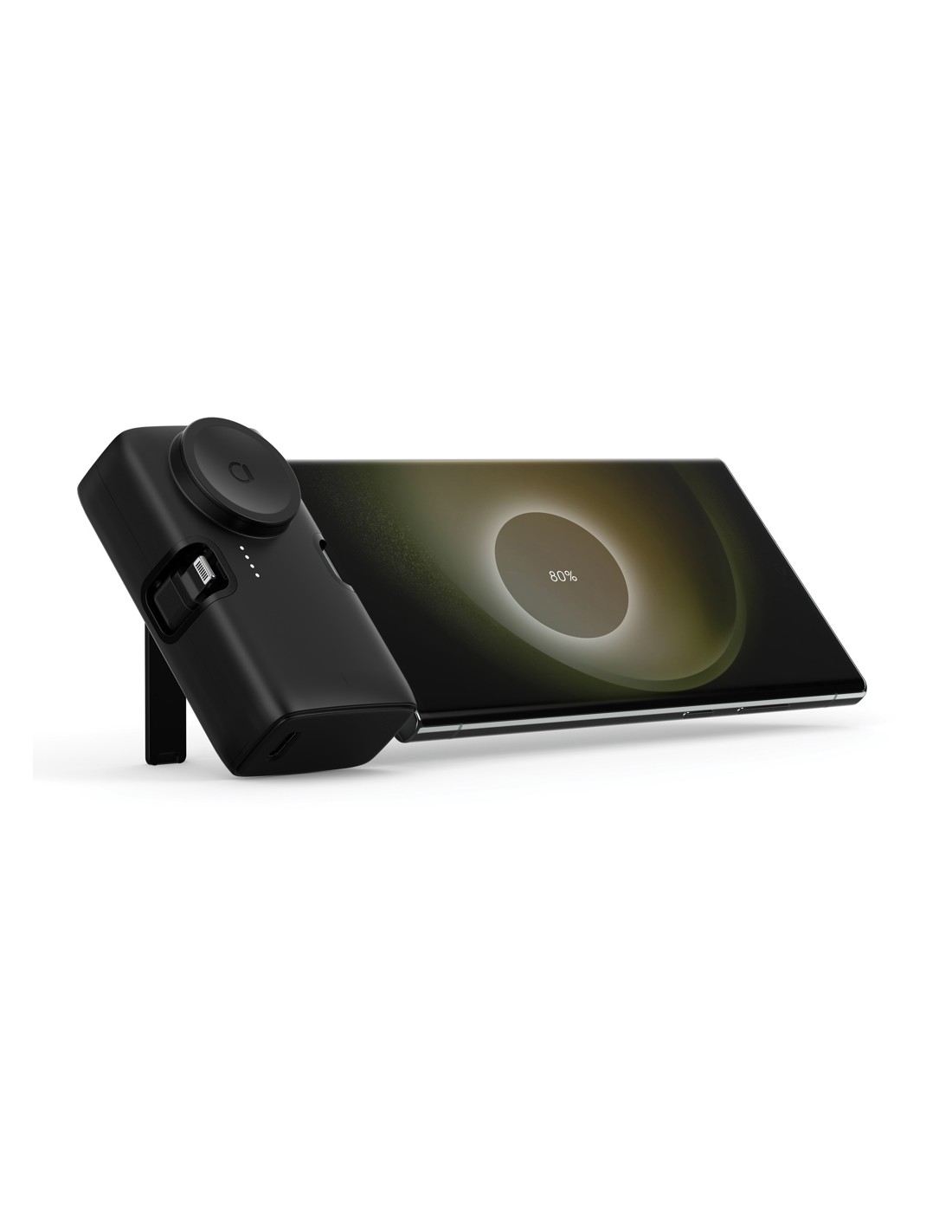 Tag 20W bærbar strøm med i lommen, og vær klar til hurtig opladning på farten, uanset hvor du er! Urban Vitamin San Diego er en let, men kraftfuld powerbank på 5.000 mAh. Med to hurtige opladningsmuligheder via det integrerede iOS stik (til iPhone 14 og ældre) og det avancerede Type-C output kan du oplade din telefon uden at skulle medbringe kabler! Du kan endda oplade to ting på samme tid. Alle udgange tilbyder ultrahurtig 20W opladning for at genoplade op til 50% på mindre end 30 minutter. Ud over to integrerede stik har den også en USB-C indgangsport til hurtig genopladning af powerbanken. Den leveres med en integreret uroplader til opladning af alle nyere Apple urmodeller. Den har også et integreret stativ, så du kan oplade din telefon, mens du ser film eller lytter til musik. Fremstillet af RCS genanvendt ABS og genanvendt PC, det samlede genanvendte indhold er 24% baseret på varens samlede vægt. PVC-fri og plastikpakket i plastikreduceret kasse.