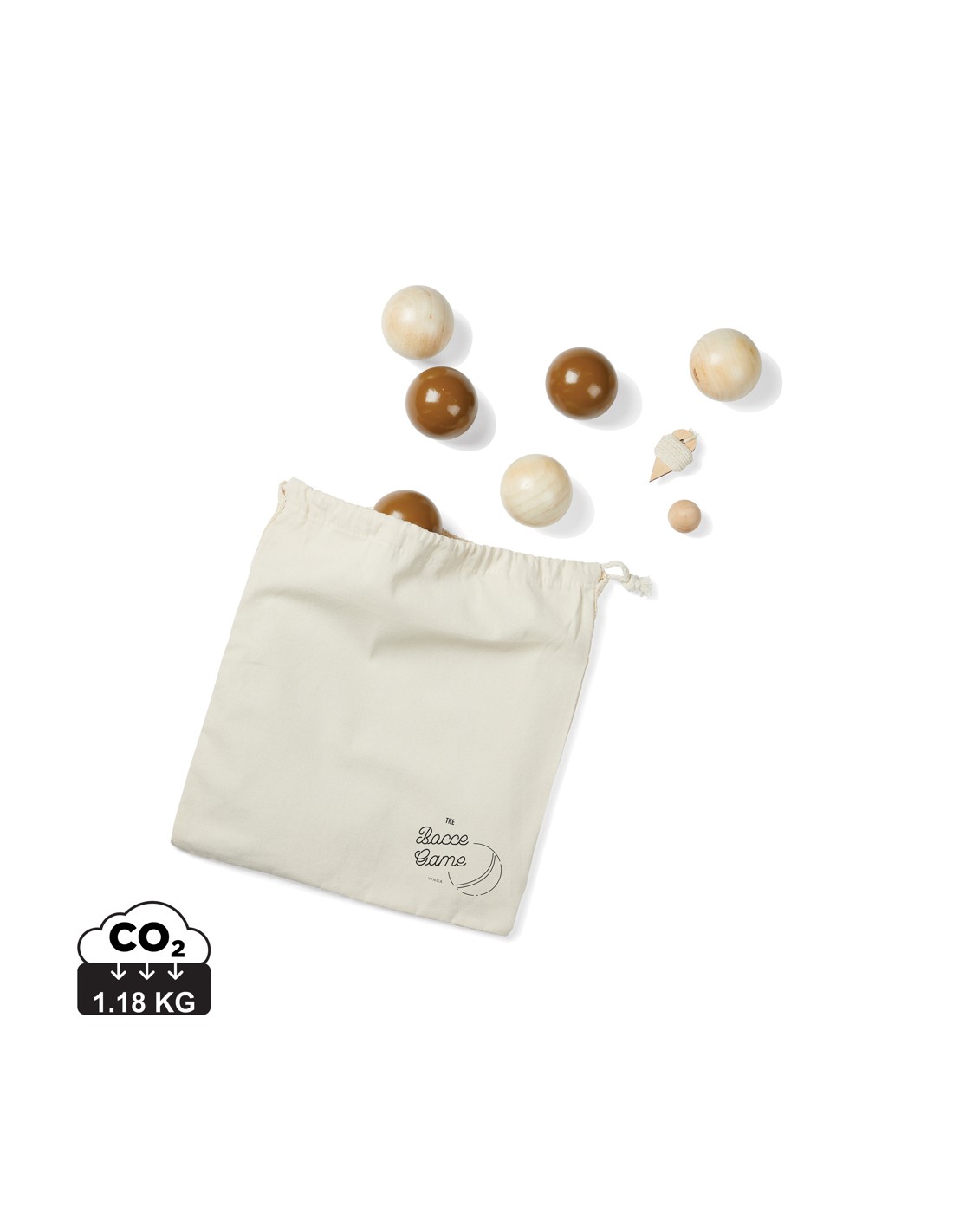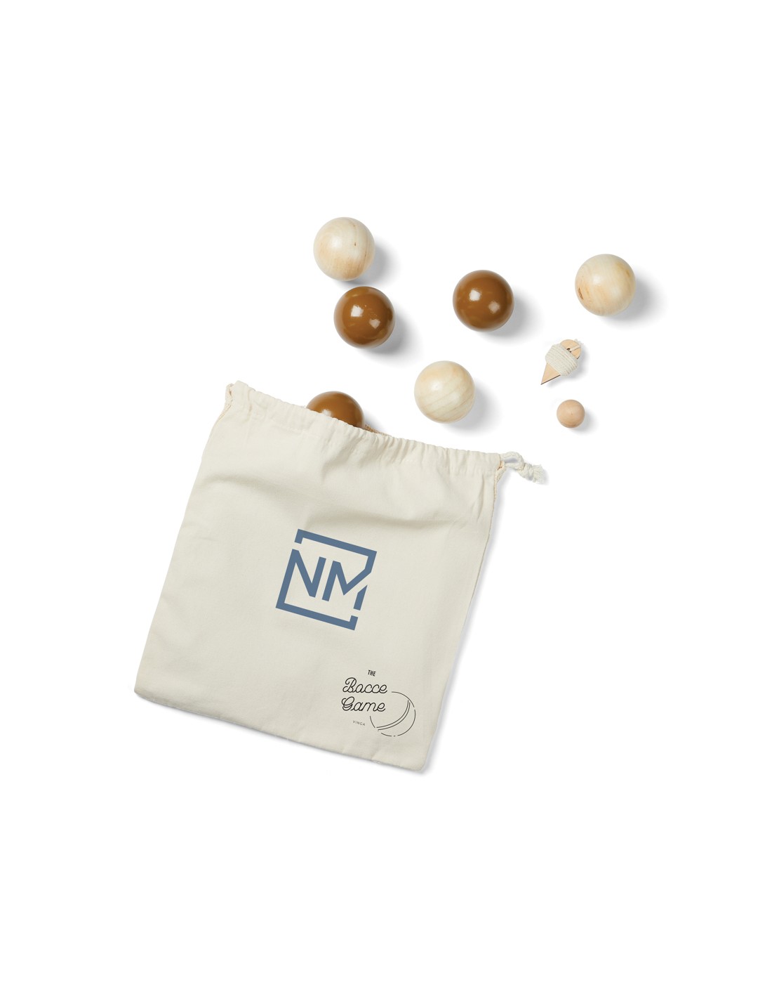 Boccia er et præcisionsspil, som passer til alle mennesker i alle aldre. Det passer til enhver lejlighed og næsten overalt som på stranden, i haven eller mange andre udendørs steder. Man kan spille individuelt eller på hold, og reglerne er meget enkle: Den, der er tættest på den lille målkugle, har vundet. Der medfølger 6 bolde, 1 lille målbold og et måleredskab. Spillet er pakket i en bomuldspose med netbagside så det er nemt at have med. Manual medfølger. Alle trædele er fremstillet af FSC®-certificeret fyrretræ af høj kvalitet, hvilket sikrer træ fra ansvarligt forvaltede skove. Bolde: diameter 6,5 cm.