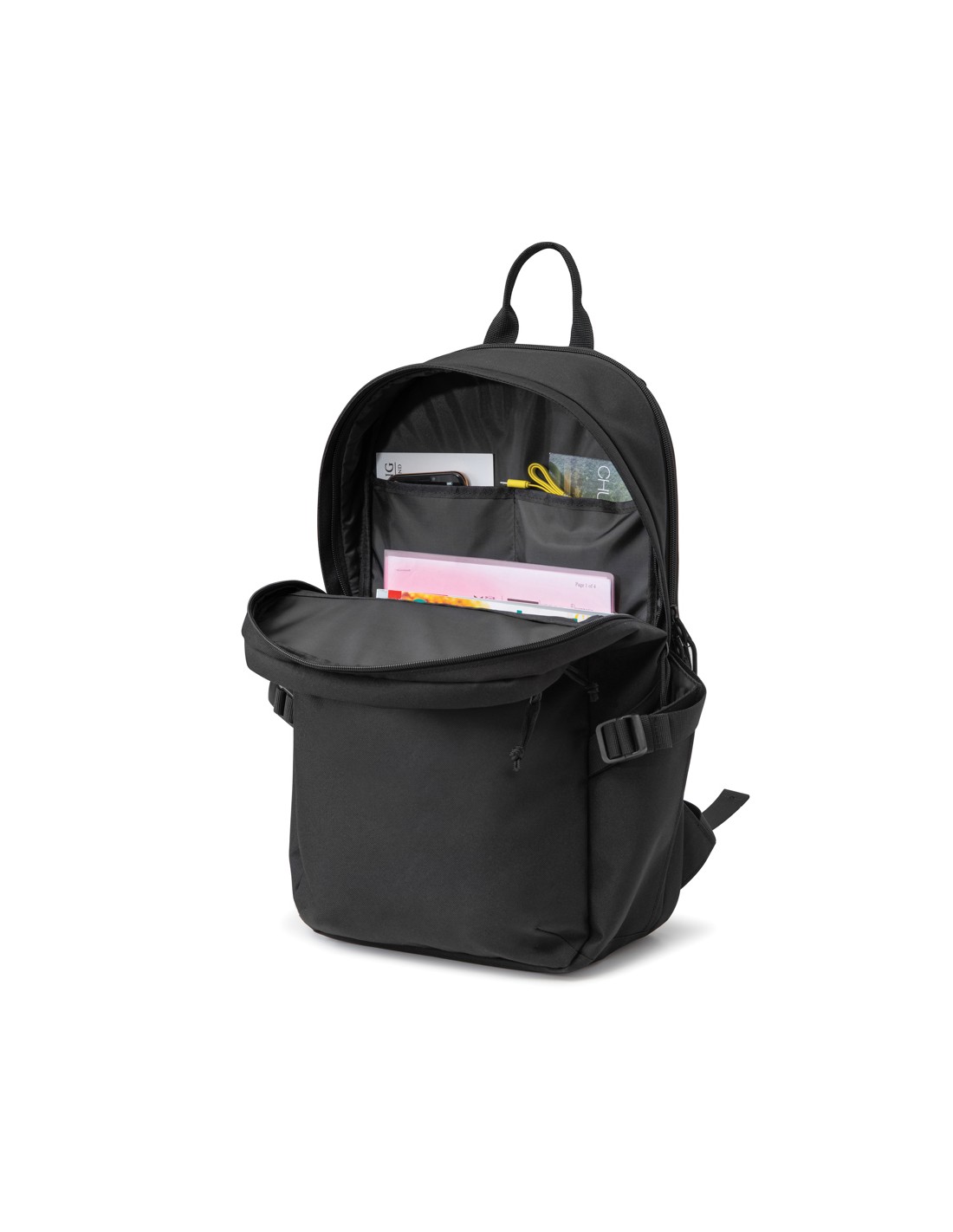 En moderne og bæredygtig opdatering af en klassisk computerrygsæk med genanvendt stof og webbing fremstillet af plastflasker. Dobbelt lynlåslomme øverst til opbevaring af tilbehør. Lynlåslomme foran med clip til nøglebundt. To sidelommer til vandflasker med kompressionsremme. Polstret laptoprum med dobbelt lynlås bagpå (kan rumme op til en 15« laptop). Hovedrum med lynlås og indvendige lommer til organisering. Håndtag i toppen. Polstret bagpanel. Polstrede, justerbare skulderstropper. Fås på begge sider af Atlanten. Denne vare tilbydes også af Gemline til kunder i USA og Canada.