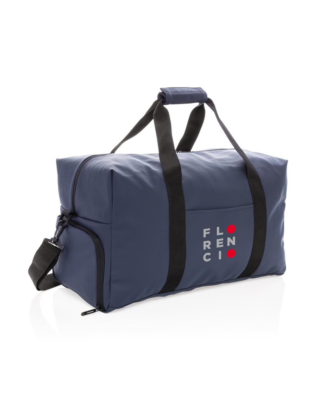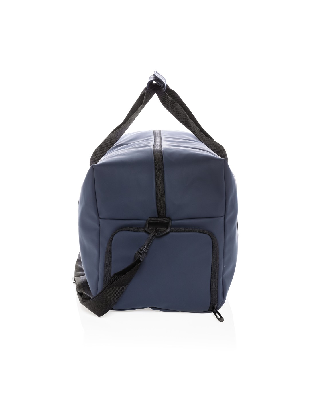 Denne weekend duffel taske er lavet af blød PU og passer til de daglige ture til fitness eller en weekendtur. Et firkantet minimalistiske design med eksterne frontlomme, indvendig lomme, samt stort hovedrum. Den har også en skolomme indvendig. Den kan bæres over skulderen eller som cross over, med de justerbare skulderremme, eller som taske med de robuste håndtag. Udvendig 100% PU. Indvendig 100% 210D polyester. PVC fri.