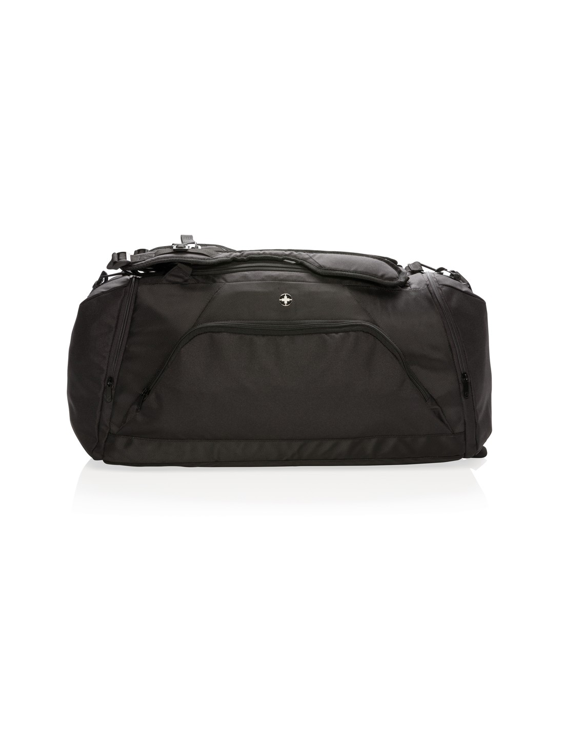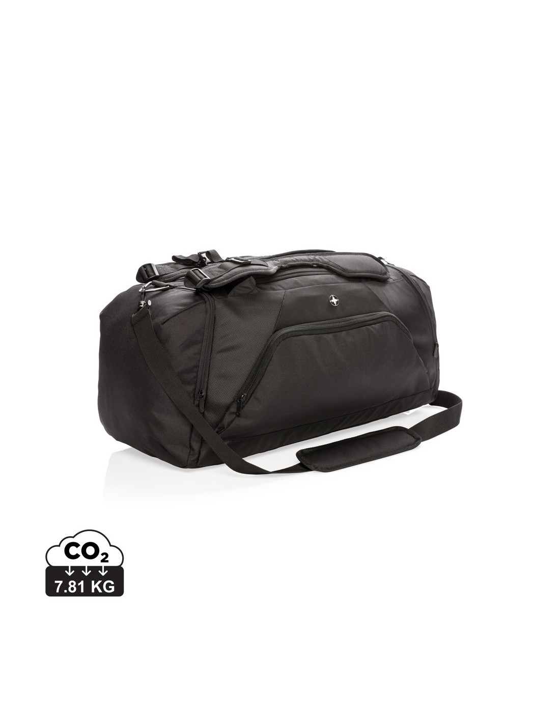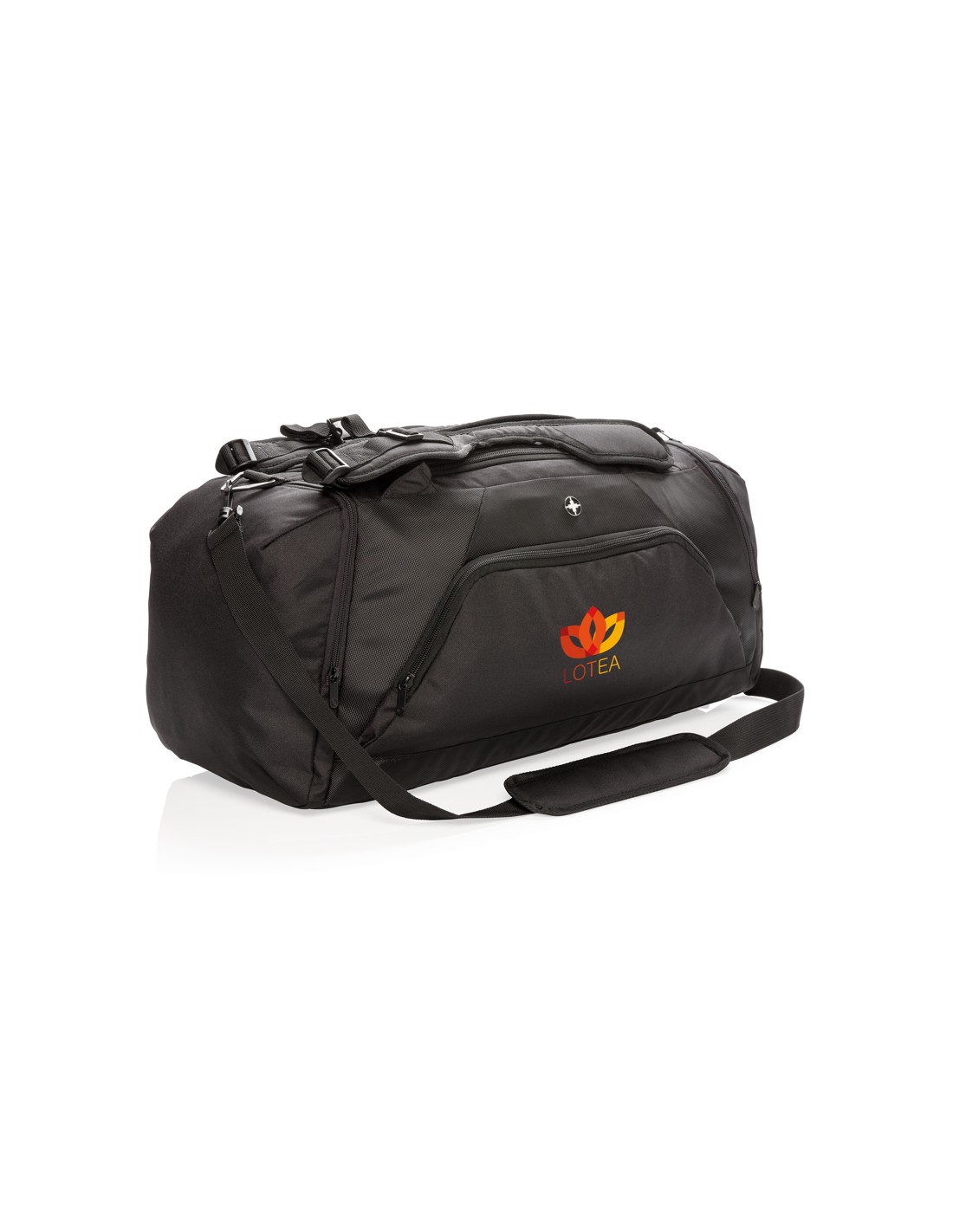 Letvægt 1680D og 600D polyester 2-i-1 taske. Fungerer som både en rygsæk og en taske. Har et rummeligt hovedrum med en lynlåslukning i U-form på toppen, et siderum til sko eller snavset tøj og en lomme med lynlås i siden. Bagpå sidder en flaskeholderlomme og en lomme til hurtig adgang. Lynlåslomme foran med 2 RFID-beskyttede lommer. Justerbare skulderstropper giver bærekomfort og fleksibilitet. PVC-fri.