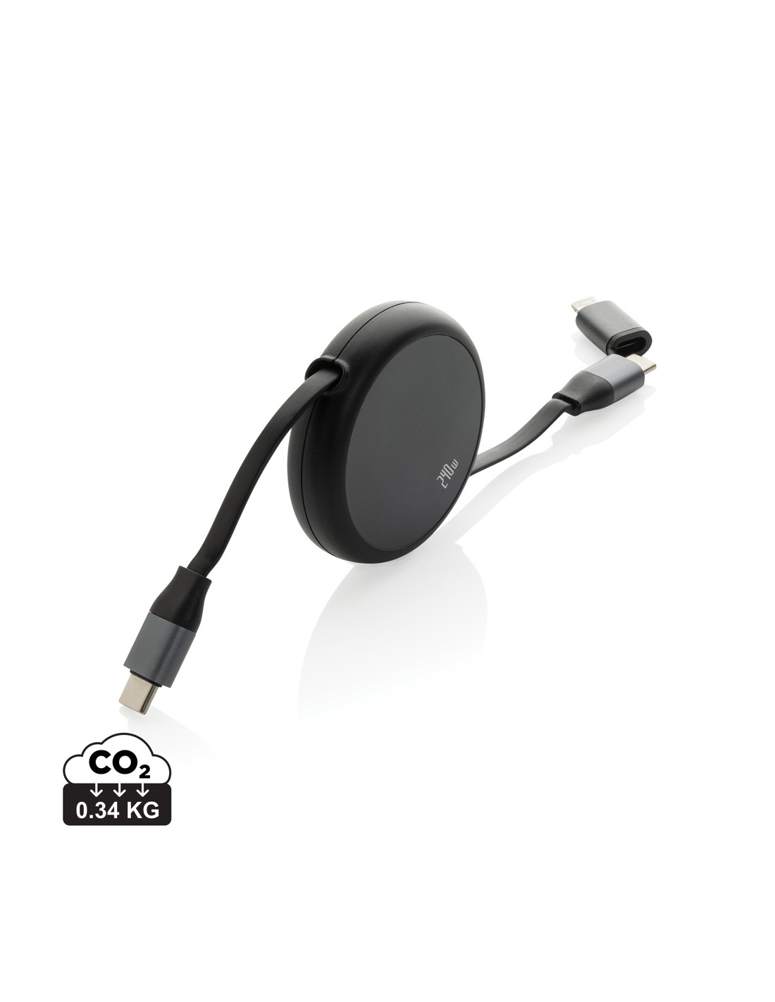Terra RCS genanvendeligt aluminium, udtrækkeligt 240 W 2-i-1-kabel. Terra er et højtydende, udtrækkeligt opladerkabel designet til ultrahurtig opladning og maksimal brugervenlighed. Med en USB-C indgang og dobbelte udgangsstik (USB-C og iOS) oplader det alt fra telefoner til bærbare computere med lynets hastighed – op til 240 W.Den smarte udtrækkelige mekanisme strækker sig fra kun den ene side og kan justeres til fire forudindstillede længder, så den er nem at bruge i alle situationer. Terra understøtter også datasynkronisering ved 480 Mbps og er kompatibel med CarPlay og Android Auto, så du får fuld funktionalitet i ét kompakt kabel. Fremstillet af RCS certificerede genanvendte materialer, herunder genanvendt aluminium, ABS, TPE og tin. RCS (Recycled Claim Standard) er en standard til verifikation af et produkts genanvendte indhold gennem hele forsyningskæden. Samlet genanvendt indhold: 69 % baseret på produktets samlede vægt. PVC-fri og emballeret i FSC®-emballage.