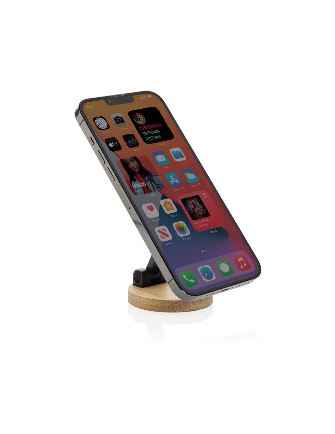 Sammenklappeligt og kompakt magnetisk telefonstativ med ekstra stærk magnet. Kompatibel med alle telefoner, der har en integreret magnet (iPhone 12 og nyere) til Android kompatibel med telefoner, der understøtter QI2 andre telefoner har brug for et magnetisk telefonetui. Stativet er fremstillet af RCS (Recycled Claim Standard) certificeret genanvendt ABS og naturlig bambus. Samlet genanvendt indhold: 30 % baseret på varens samlede vægt. RCS certificering sikrer en fuldstændig certificeret forsyningskæde for de genanvendte materialer.