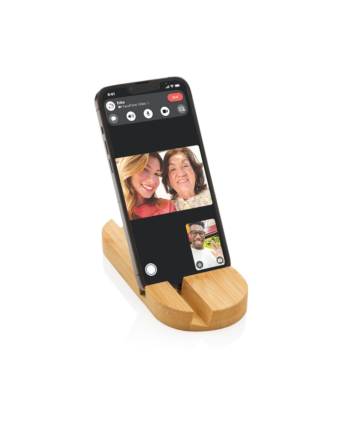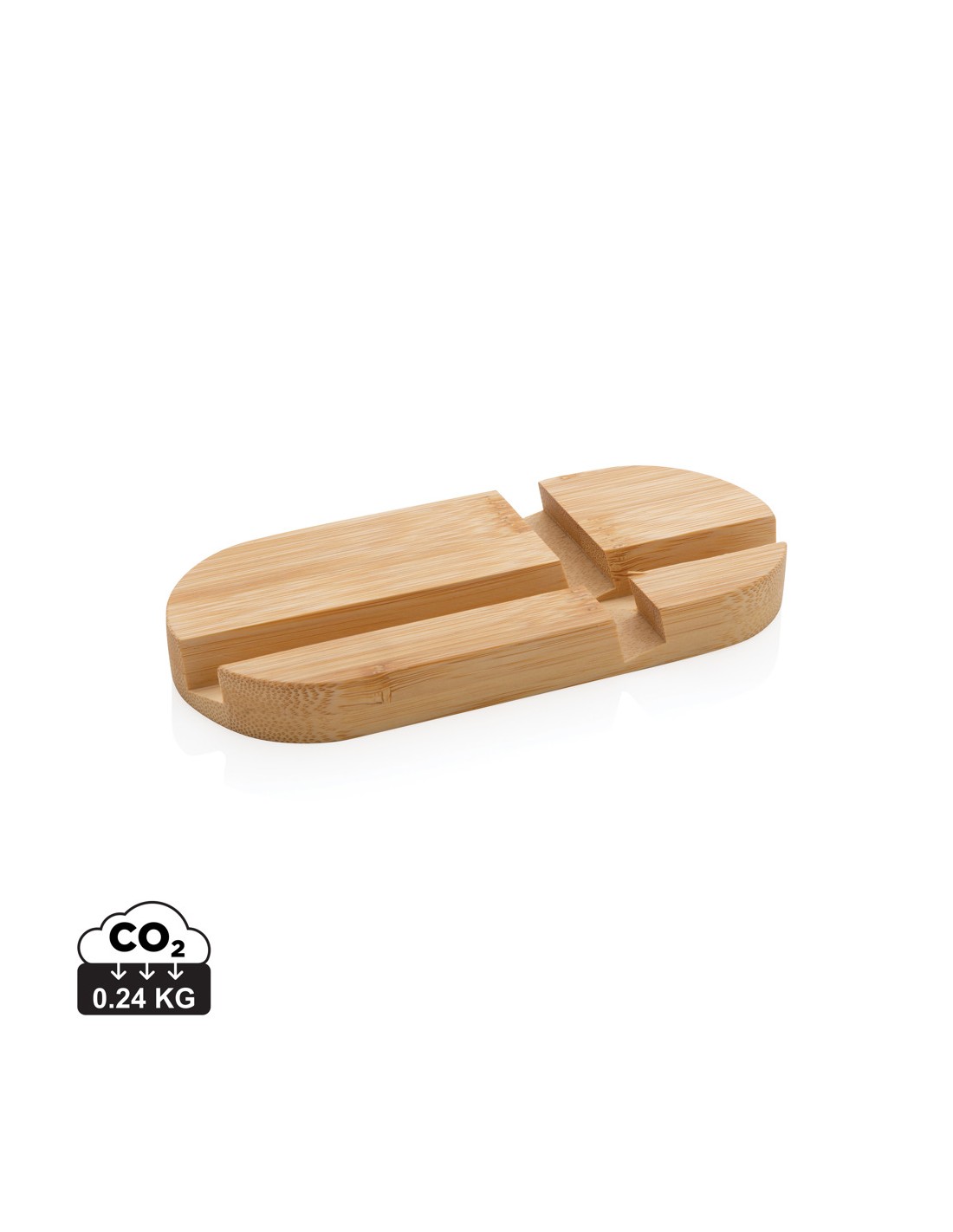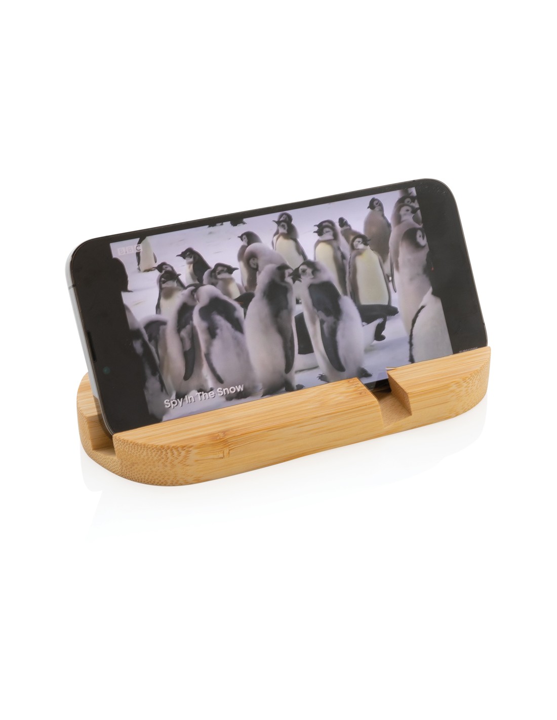 Telefon holder er lavet af helt naturlig bambus. Perfekt på dit skrivebord, eller når du arbejder hjemmefra. Holderen kan rumme de fleste mobile enheder og tablets. Den kortere rille er optimeret til mobiltelefoner og den længere til tablet´s