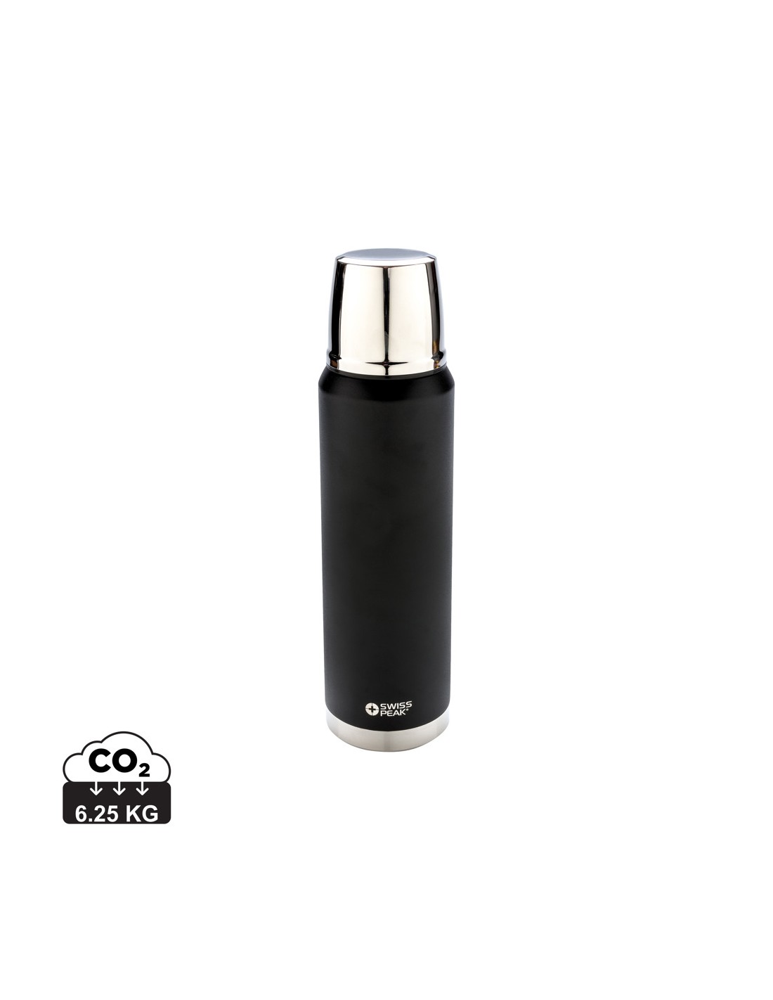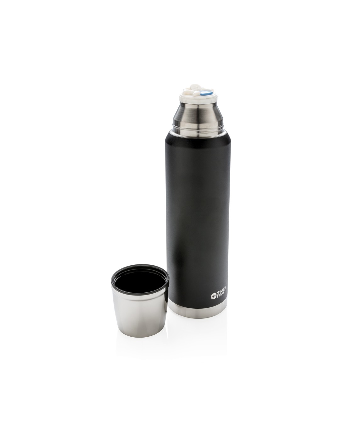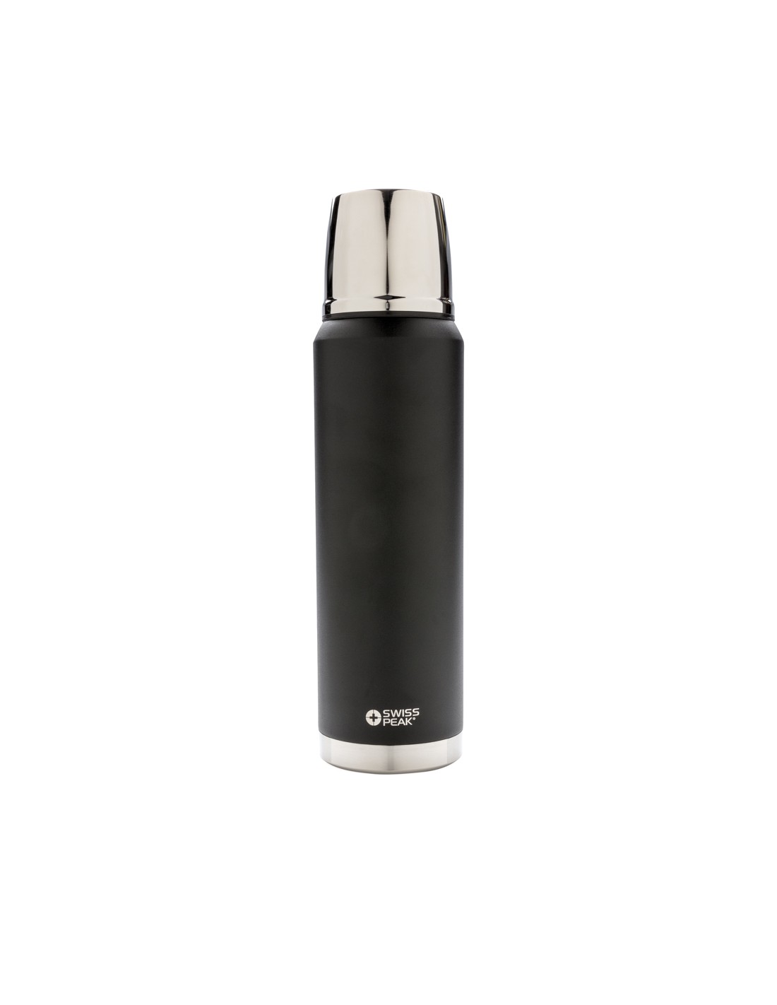 Swiss Peak Elite serien er med dobbeltvægget vakuum isoleret type 18/8 rustfrit stål. Den sorte pulver coatede farve er super stærk for lang holdbarhed. Ingen misfarvning eller revner. Indervæggen er kobberbelagt for optimal varmeegenskaber og kan holde varmt i op til 8 timer og koldt i op til 24 timer. Kun til håndvask. Indhold 1.000ml.