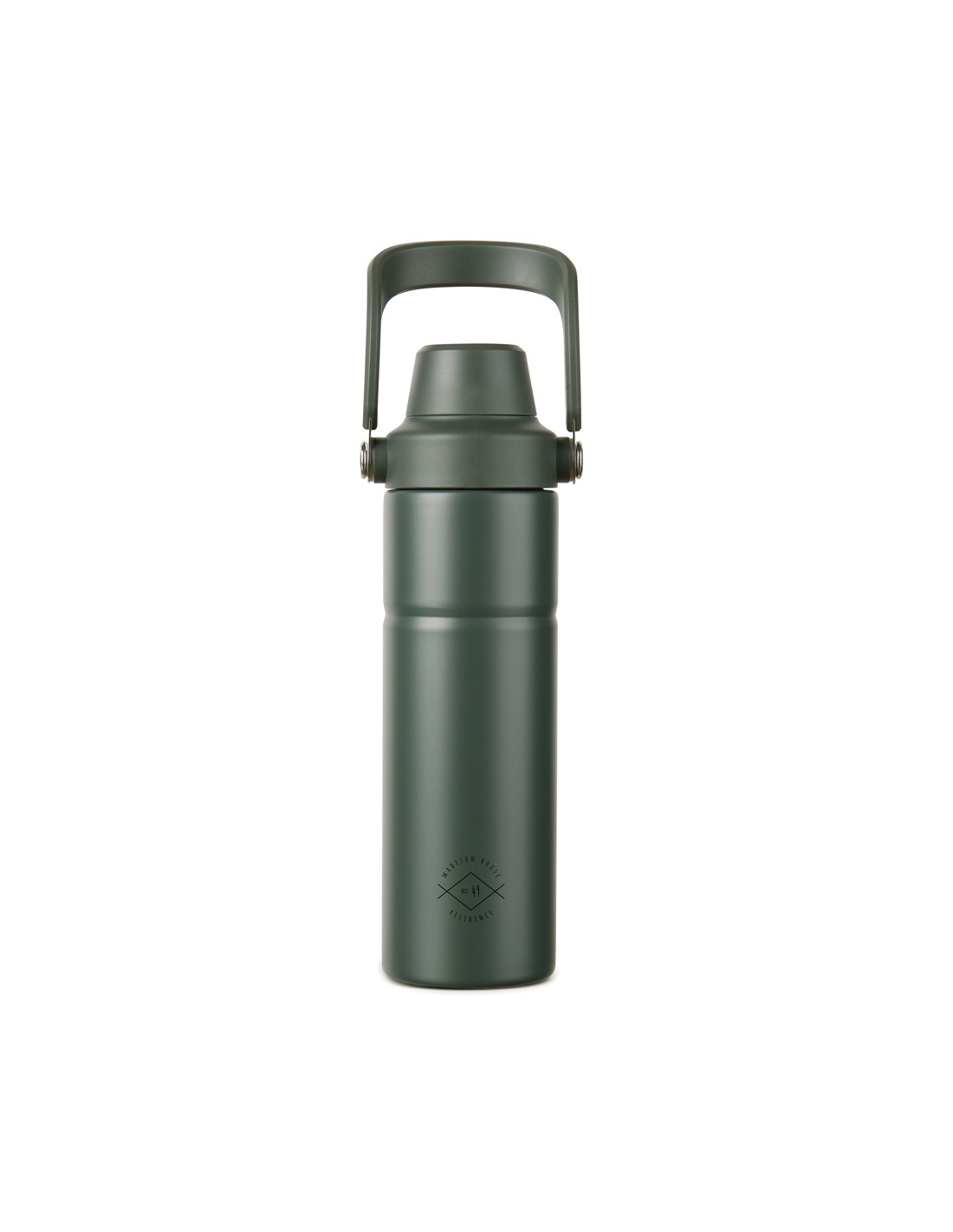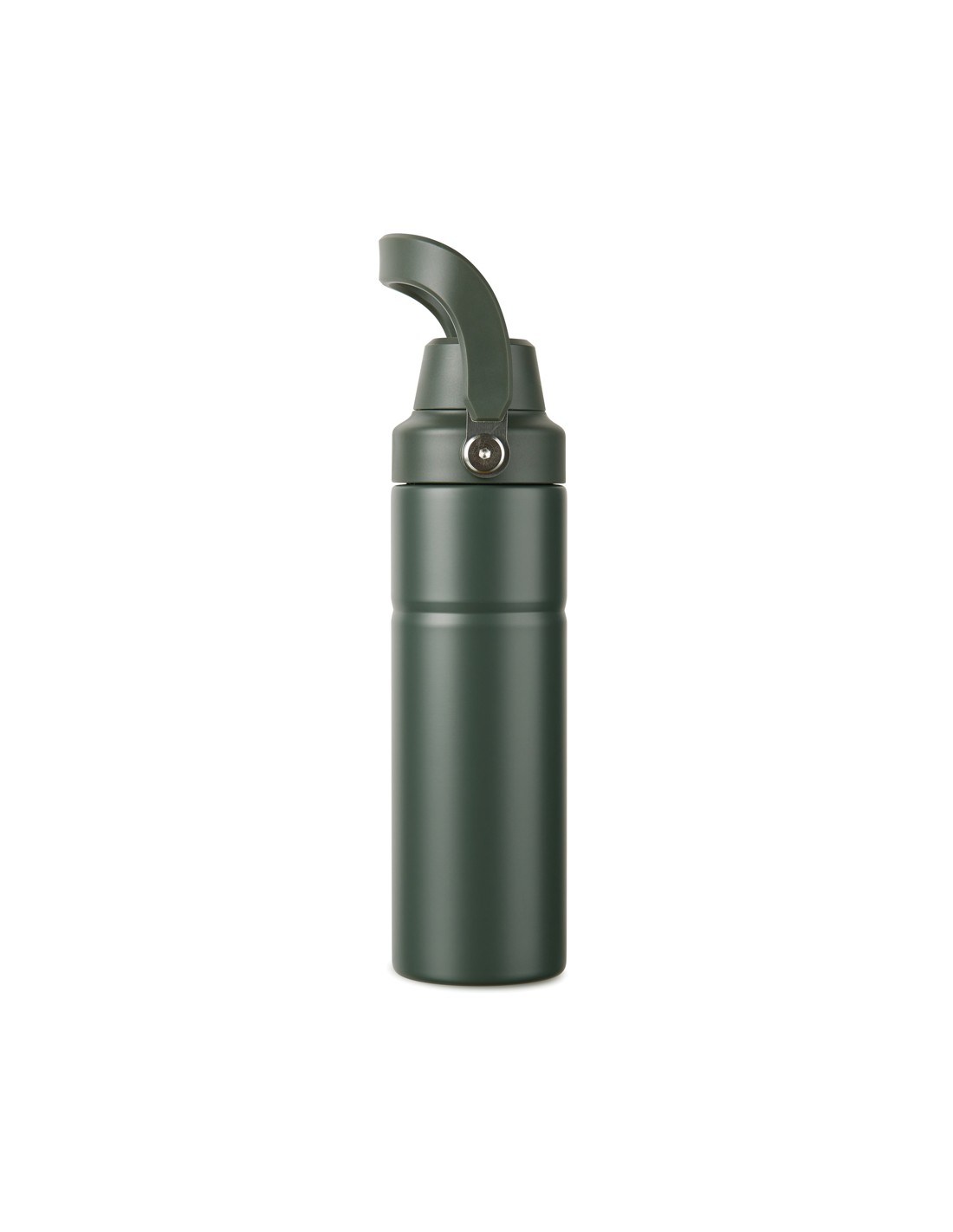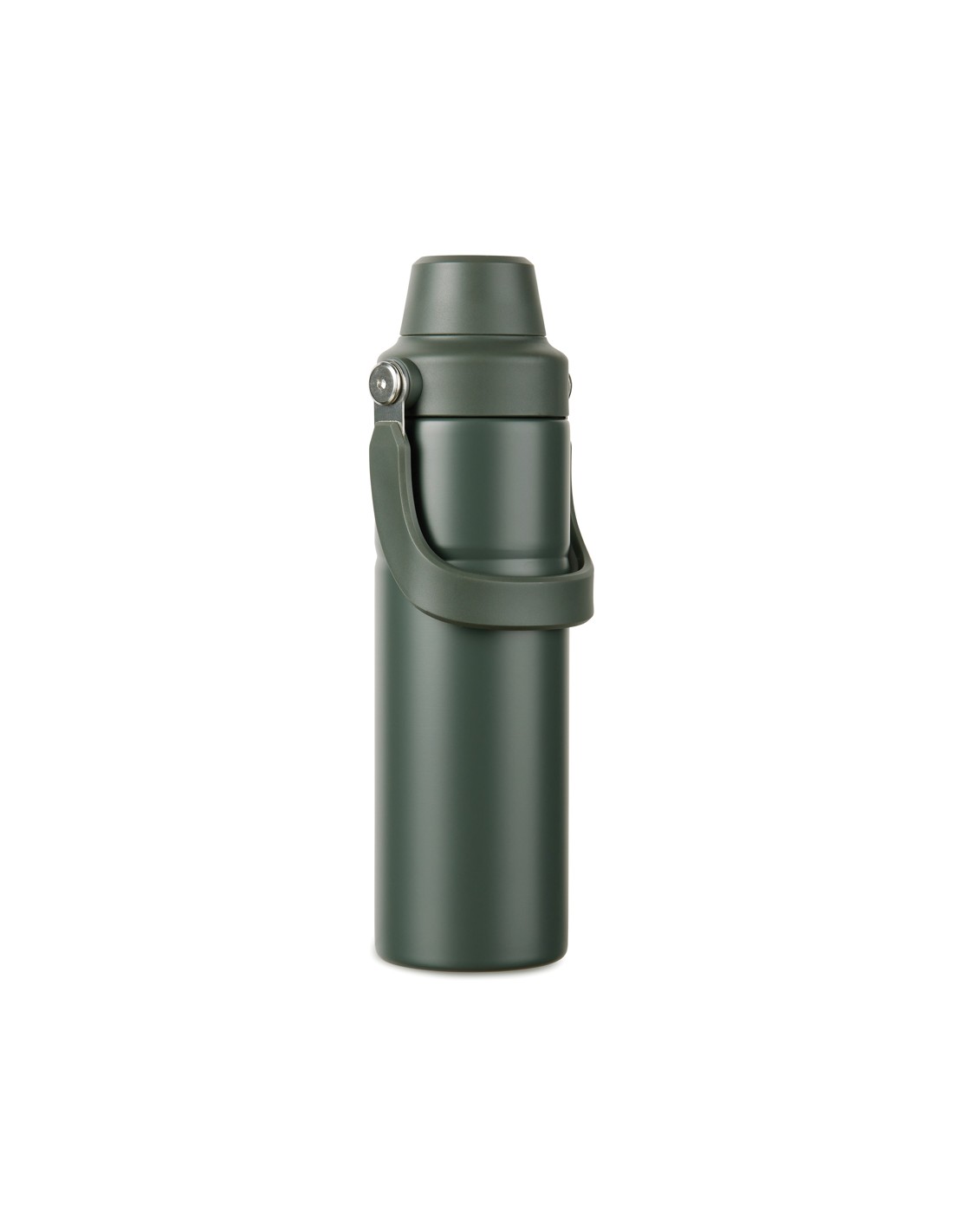 En moderne og holdbar dobbeltvægget vakuumflaske fremstillet af genanvendt rustfrit stål. Denne flaske er perfekt designet til funktionalitet med sit praktiske håndtag og er ideel til eventyr. Låget har to åbninger: en slurkvenlig top for nem adgang og en større åbning for ubesværet genopfyldning og nem rengøring. Den dobbeltvæggede isolering holder din drik kold i op til 12 timer og varm i op til 4 timer, så du kan holde dig forfrisket på hele rejsen. Tåler ikke opvaskemaskine eller mikroovn, kun håndvask. Certificeret af RCS (Recycled Claim Standard), RCS certificering garanterer, at hele forsyningskæden af genanvendte materialer er certificeret. Det samlede genanvendte indhold er baseret på den samlede produktvægt. Dette produkt indeholder 65 % RCS certificeret genanvendt rustfrit stål.