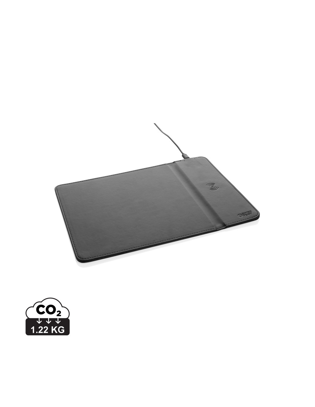 Luksus musemåtte med integreret 10W trådløs oplader. Opladningsområdet kan også bruges som telefonstativ, i opretstående stilling. Fremstillet med RCS-certificerede genbrugsmaterialer (Recycled Claim Standard). RCS-certificering sikrer en fuldstændig certificeret forsyningskæde af de genanvendte materialer. Den glatte og luksuriøse overflade opgraderer ethvert skrivebord til et godt arbejdsmiljø. Størrelse: 29x 19x 2 cm. Ekstra tyk for et perfekt arbejdsområde. Ydermateriale fremstillet med RCS certificeret PU. Samlet genanvendt indhold: 27% baseret på den samlede artikel vægt. Med 150 cm PVC-frit TPE-materiale kabel. Artikel og tilbehør PVC-fri. Trådløs opladning kompatibel med Android nyeste generationer, iPhone 8 og op. Input: 9V / 2A Trådløs udgang: 9V / 1.1A.