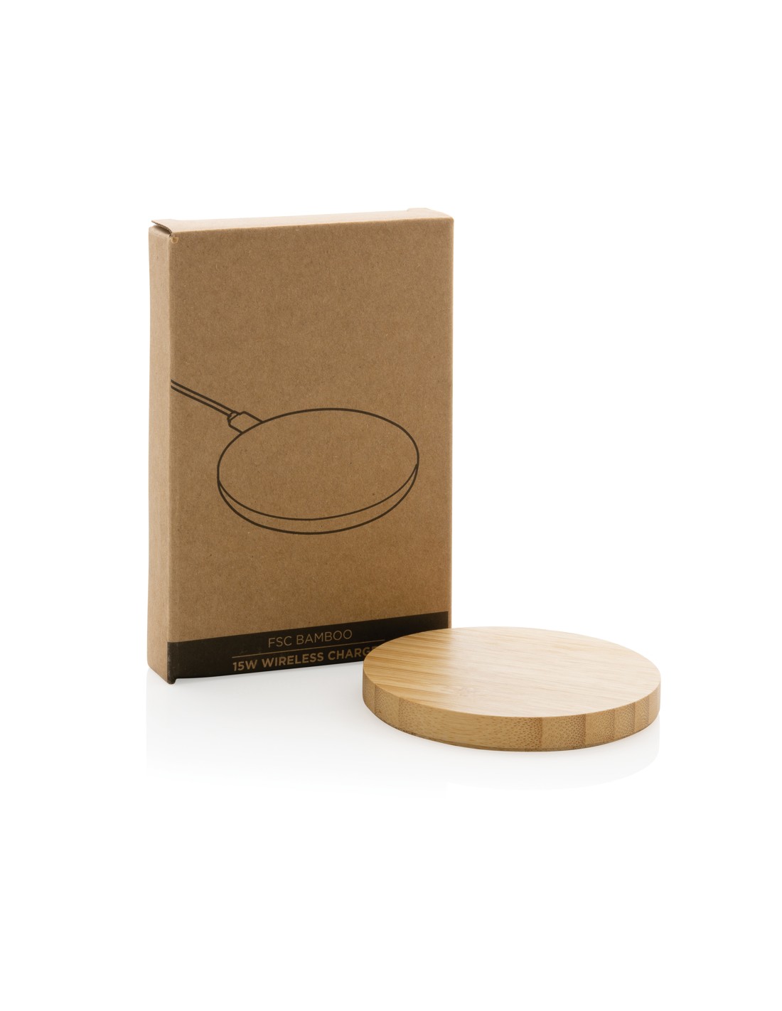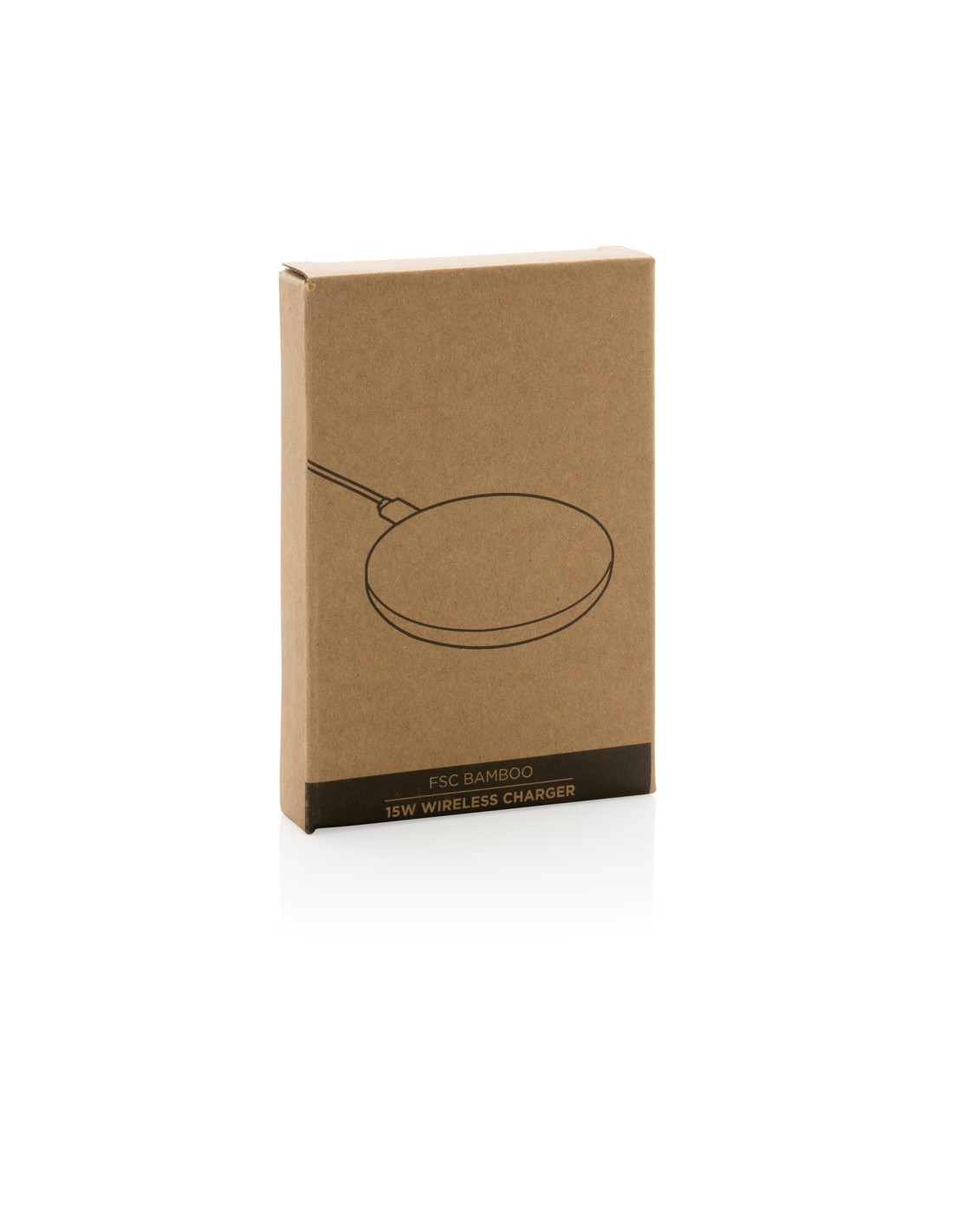 Ultrahurtig 15W trådløs oplader, komplet FSC® 100% bambus udvendigt. Trådløs opladning kompatibel med Android nyeste generationer, iPhone 8 og nyere. Artikel og tilbehør, er PVC-fri. Inklusive 150 cm type C ladekabel lavet af RCS certificeret genanvendt TPE. Pakket i FSC® mix kraftboks. Type-C ind; Indgang 5V/2A; 9V/2A;12V/1,5A; Trådløs udgang 5V/1A;9V/1.1A; 9V/1,67A (15 W)