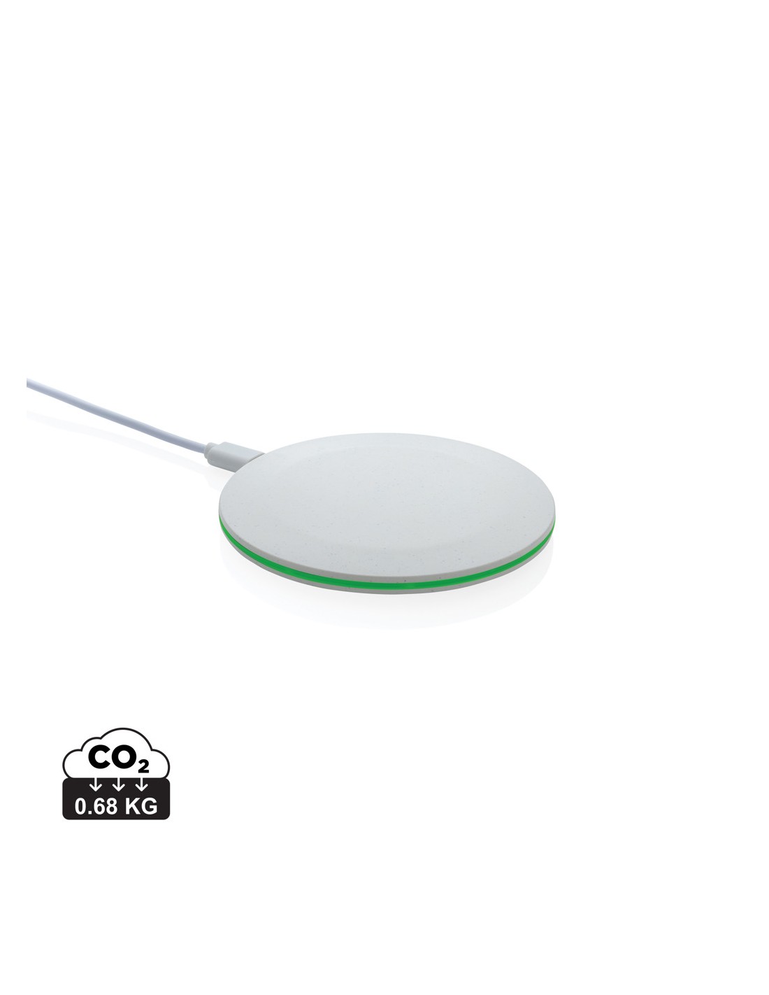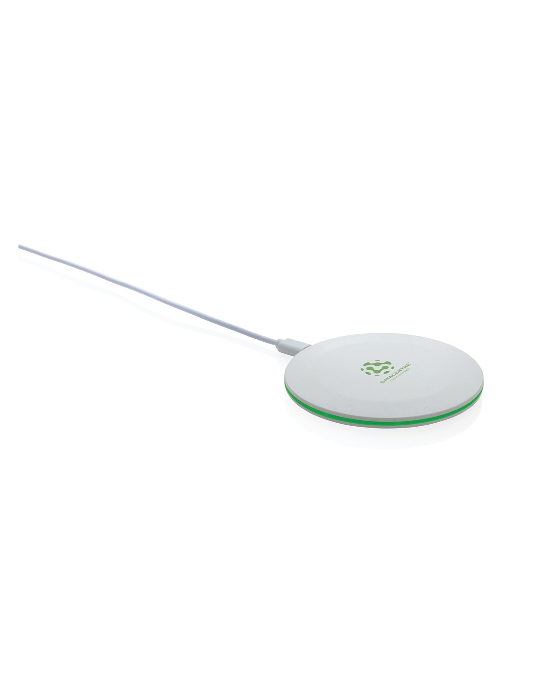 Ultrahurtig 15W trådløs oplader lavet med RCS (Recycled Claim Standard) certificeret genanvendt ABS. Samlet genanvendt indhold: 66% baseret på samlet artikelvægt. RCS-certificering sikrer en fuldstændig certificeret forsyningskæde af de genanvendte materialer. Trådløs opladning kompatibel med Android nyeste generationer, iPhone 8 og nyere. Vare og tilbehør PVC-fri. Inklusive 120 cm type C ladekabel fremstillet af RCS certificeret genanvendt TPE. Pakket i FSC mix kraftboks. Type-C ind; Indgang 5V/2A; 9V/2A;12V/1,5A; Trådløs udgang 5V/1A;9V/1.1A; 9V/1,67A (15W)