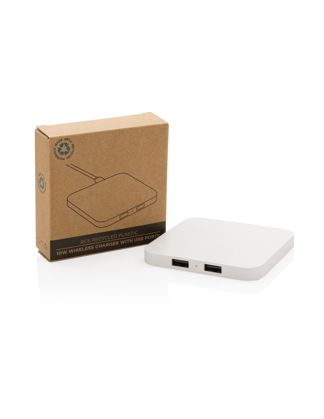 10W trådløs oplader med USB-porte, RCS genanvendt plast