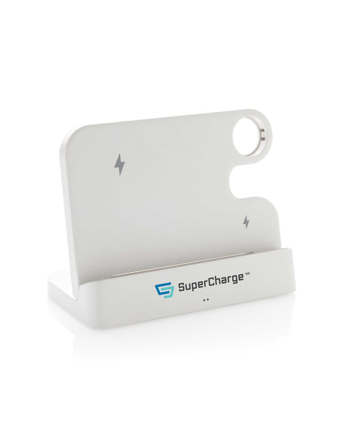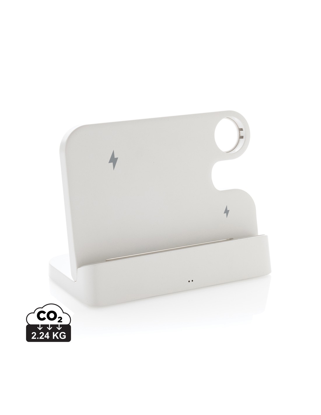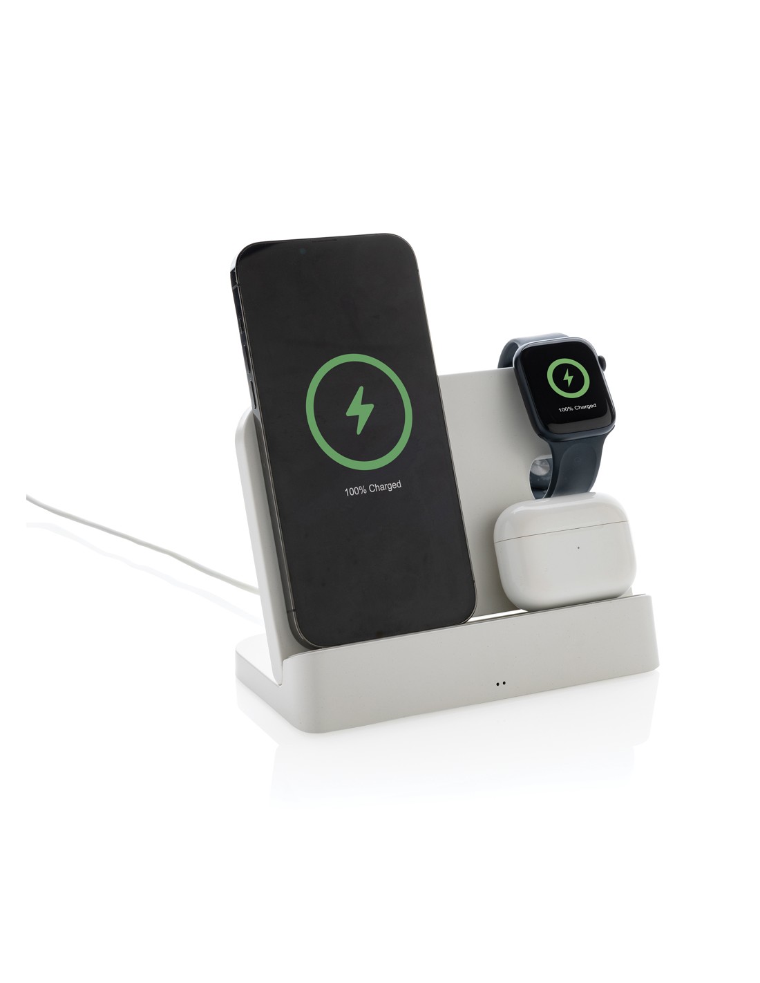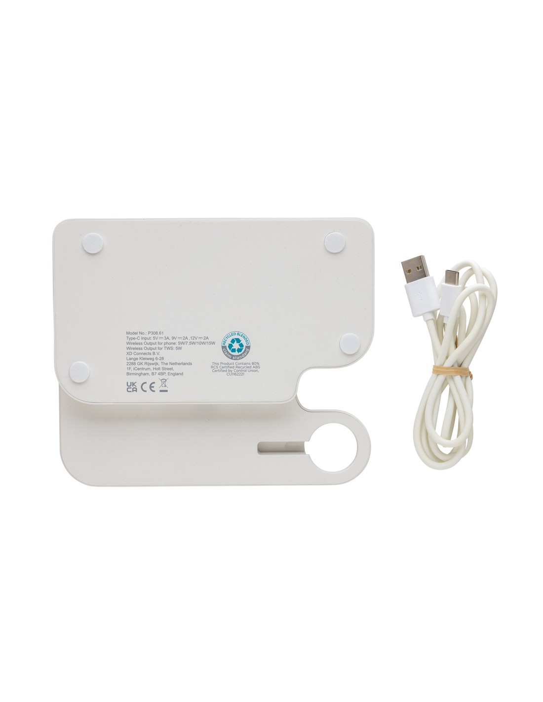 Sammenklappelig designoplader med 15W trådløs oplader lavet af genanvendt ABS. Med ekstra 5W trådløs oplader til opladning af mindre genstande som øretelefoner. Med iWatch-slot til det officielle opladningskabel til iWatch. På bagsiden er der en 5V/1A USB A- og USB C-udgangsport til at oplade ting med kabel. Med silikonespidser i bunden for at undgå at glide og silikonepuder på stativet for at holde din telefon i perfekt kondition. Samlet genanvendt indhold: 80% baseret på varens samlede vægt. RCS-certificering sikrer en fuldstændig certificeret forsyningskæde for de genanvendte materialer. Pakket i FSC®-emballage. Fri for PVC. Inklusive RCS genanvendt TPE 120 cm USB A til USB C-opladerkabel. Pakket i FSC®-emballage. PVC-fri
