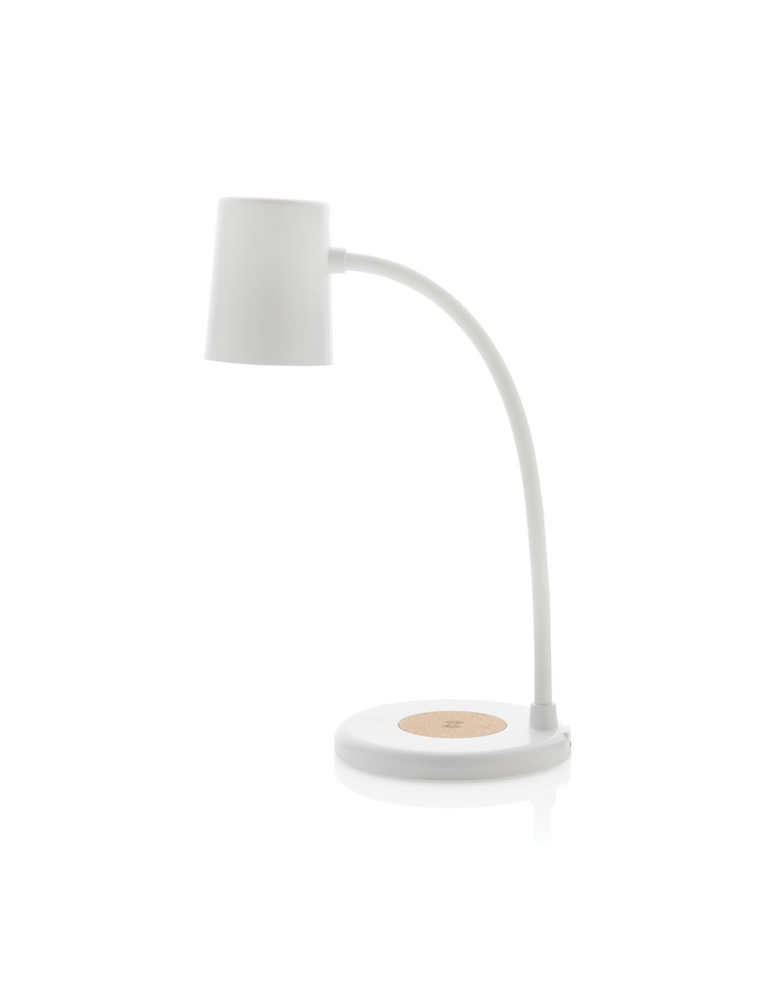 Ultrahurtig 15W trådløs oplader med integreret skrivebordslampe. Den fleksible skrivebordslampe giver 55 lumen og har 3 lystilstande (varm, hvid og hybrid). Fremstillet af RCS-genanvendt ABS, genanvendt PC og FSC-kork. Trådløs opladning er kompatibel med de nyeste generationer af Android og iPhone 8 og nyere. Vare og tilbehør er PVC-fri. Inklusive 120 cm type C-opladerkabel fremstillet af RCS-certificeret genanvendt TPE. Pakket i FSC®-mix kraftboks. Type-C in; Input 5V/2A; 9V/2A;12V/1.5A; Trådløs udgang 5V/1A;9V/1.1A; 9V/1.67A (15W) Samlet genanvendt indhold: 36 % baseret på varens samlede vægt. RCS-certificering sikrer en fuldstændig certificeret forsyningskæde for de genanvendte materialer.