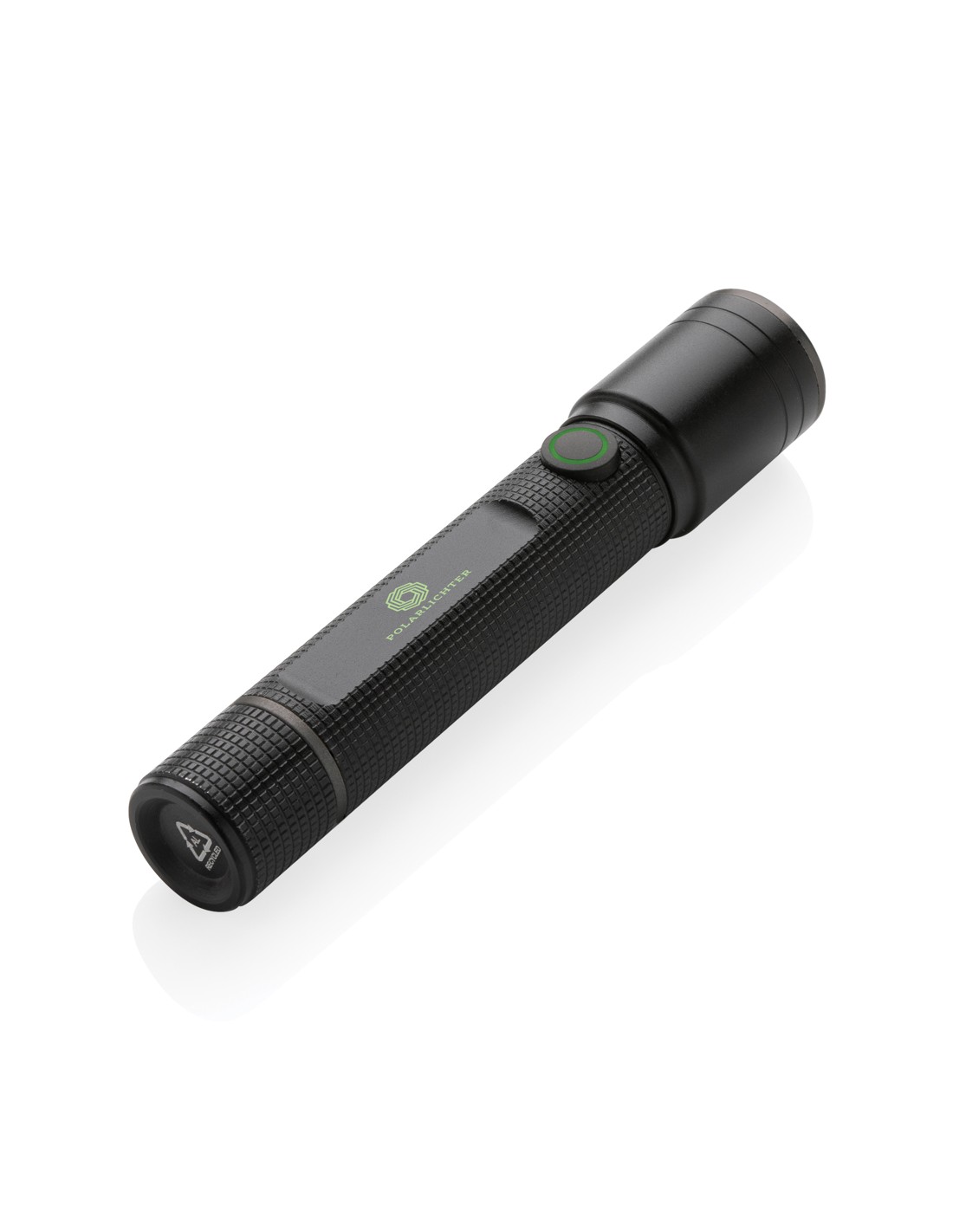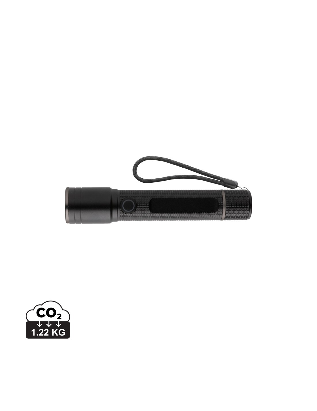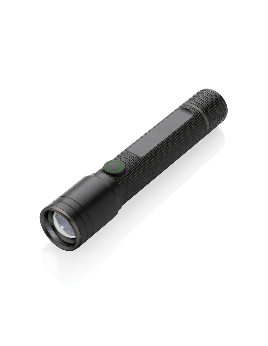 Funktionalitet, ydeevne og design er samlet i denne genopladelige 3W lommelygte, der er fremstillet af RCS certificeret genanvendt aluminium. Samlet genanvendt indhold: 20 % baseret på den samlede vægt. RCS certificering sikrer en fuldstændig certificeret forsyningskæde for de genanvendte materialer. På grund af dens IP4-klassificering er den vejrbestandig, så den kan nemt tages med udenfor. Den kraftige pære giver op til 100 lumen og en lyskegle, der rækker op til 100 meter. Lommelygten bruger et genopladeligt a-klasse batteri, så du behøver ikke at udskifte batterierne. Du skal blot oplade via din USB-stik og det medfølgende RCS certificerede genanvendte type C-kabel. Pæren af høj kvalitet leveres med 5 tilstande, herunder SOS-funktion. Batteriet på 500 mAh giver mulighed for op til 4 timers brug på en enkelt opladning. Aluminium mister ikke sine egenskaber i genanvendelsesprocessen og kan genanvendes i det uendelige. Varen og tilbehøret er 100 % PVC-fri. Pakket i FSC-mixemballage.