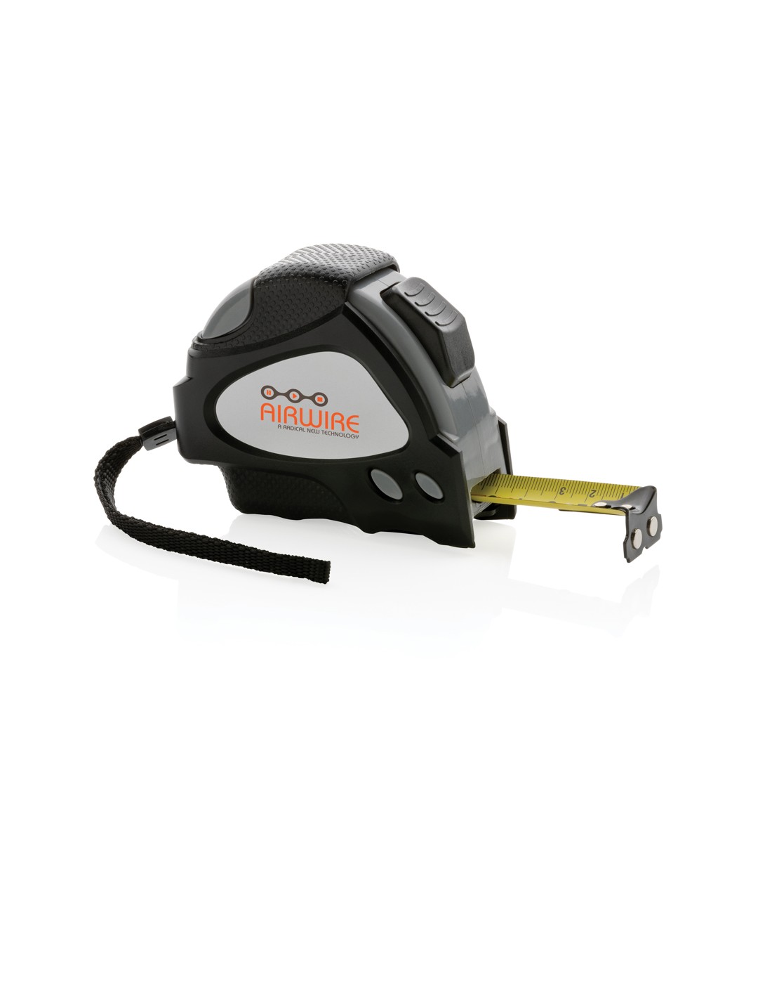 Kraftig 8 meter auto stop målebånd lavet med RCS (Recycled Claim Standard) certificeret genanvendt ABS. Samlet genanvendt indhold: 11% baseret på samlet artikelvægt. RCS-certificering sikrer en fuldstændig certificeret forsyningskæde af de genanvendte materialer. Med deluxe gummigreb for ekstra kontrol. Med udløserknap øverst og nederst, som kan bruges til egen præference. Med 25 mm enkeltsidet tape gul med sort carbon stålkrog med to integrerede magneter. Med polyester håndledsrem. Pakket i FSC® mix kraft emballage